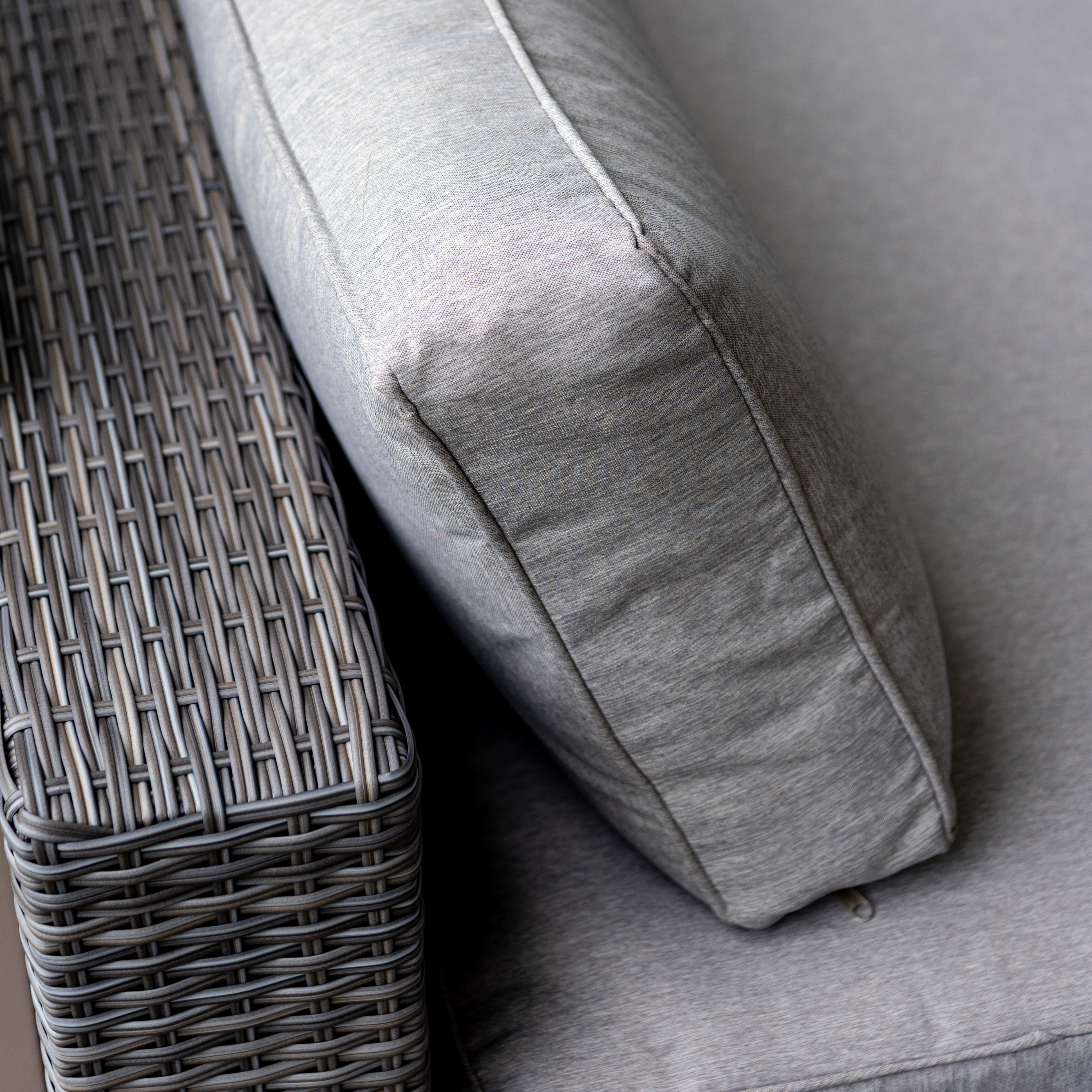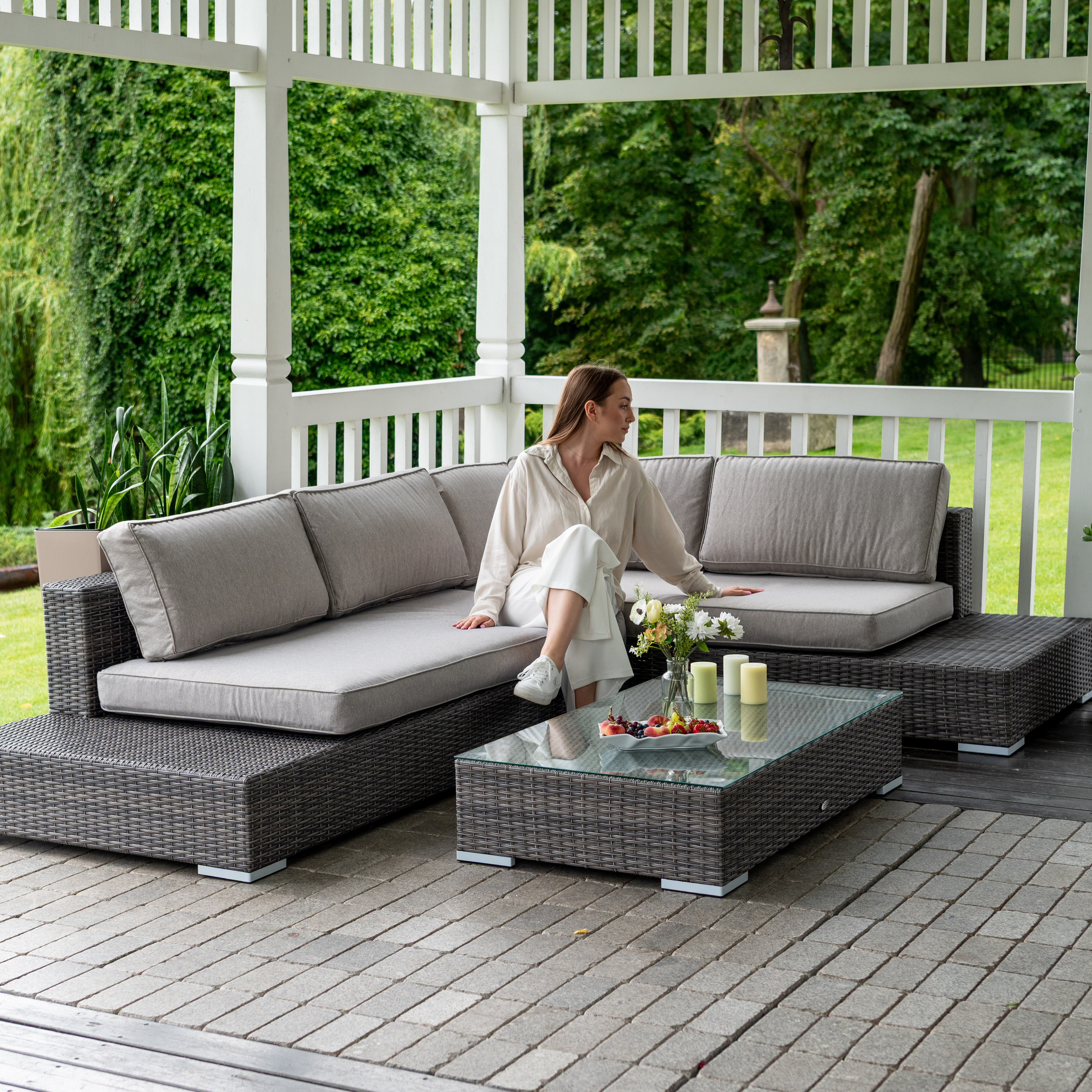 Narożnik z technorattanu VERONA Dark Grey rekomendujemy dla osób ceniących komfort oraz wyszukany i niepowtarzalny wygląd. Komplet składa się z dwóch modułów oraz stolika, które w wygodnych warunkach pozwolą wypić popołudniową kawę z przyjaciółmi lub rodziną. Zastosowane materiały zapewniają trwałość i odporność na warunki atmosferyczne, a eleganckie i gustowne wykończenia detali podkreślają jego wysoką jakość. Charakterystyczne przedłużenia modułów, powiększają optycznie zestaw nadając mu wyjątkowego uroku. Opcjonalnie mogą posłużyć jako półki na lekkie, drobne podręczne przedmioty Dla miłośników designu, gorąco polecamy.