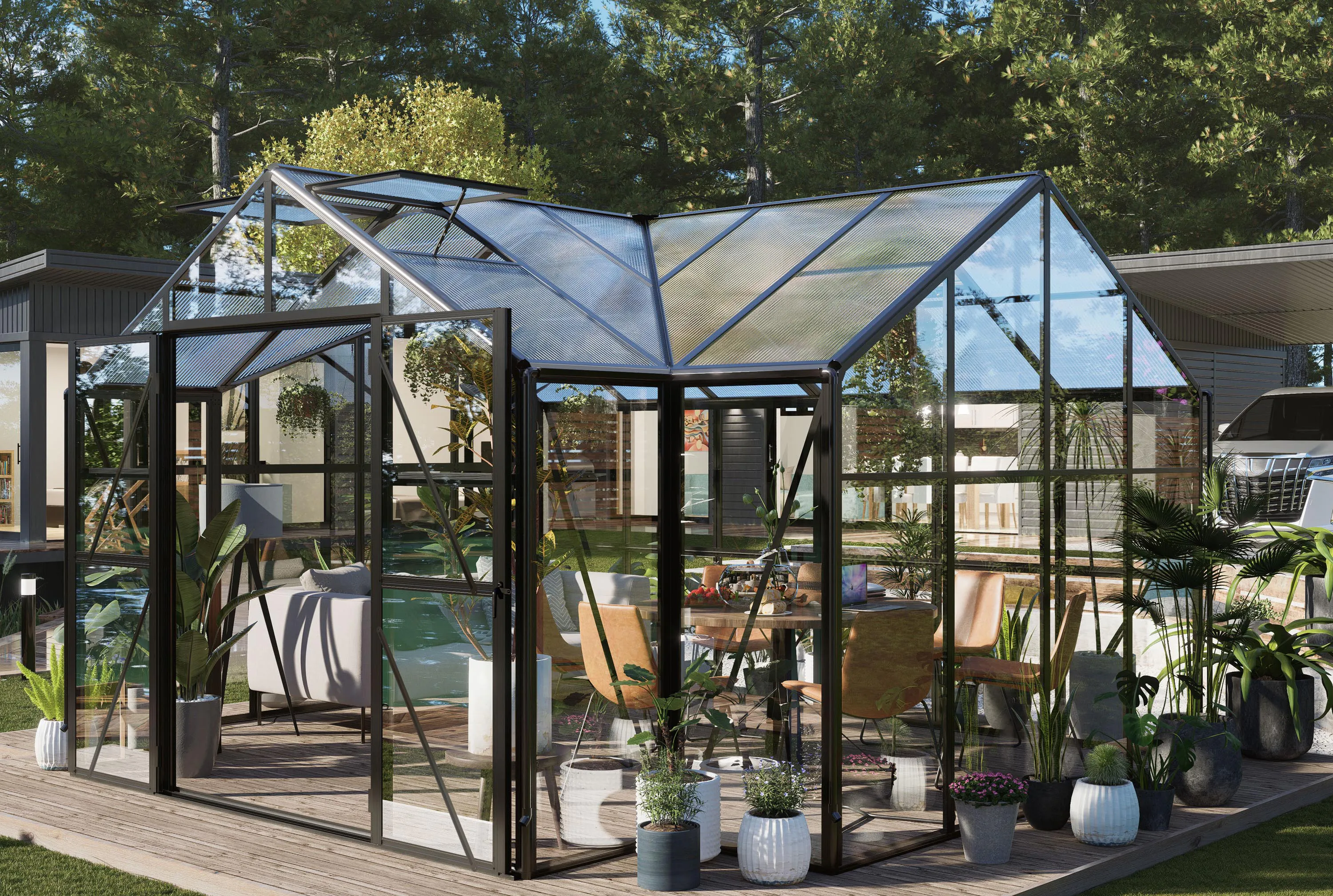 Ogród zimowy TRIBECA Black 433x360cm PC + Glass – Gutroof