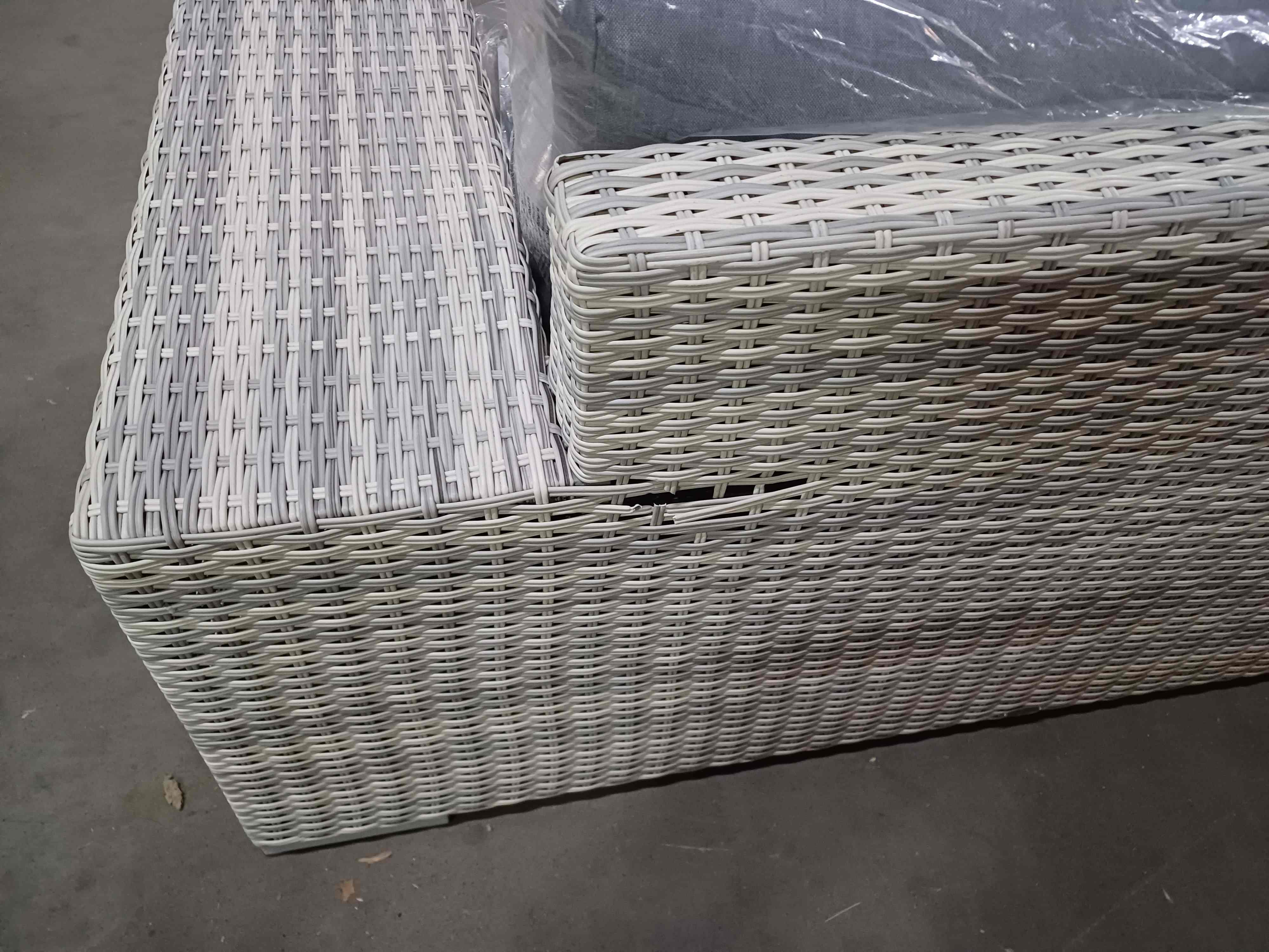 uszkodzony rattan w tylnej części sofy.
