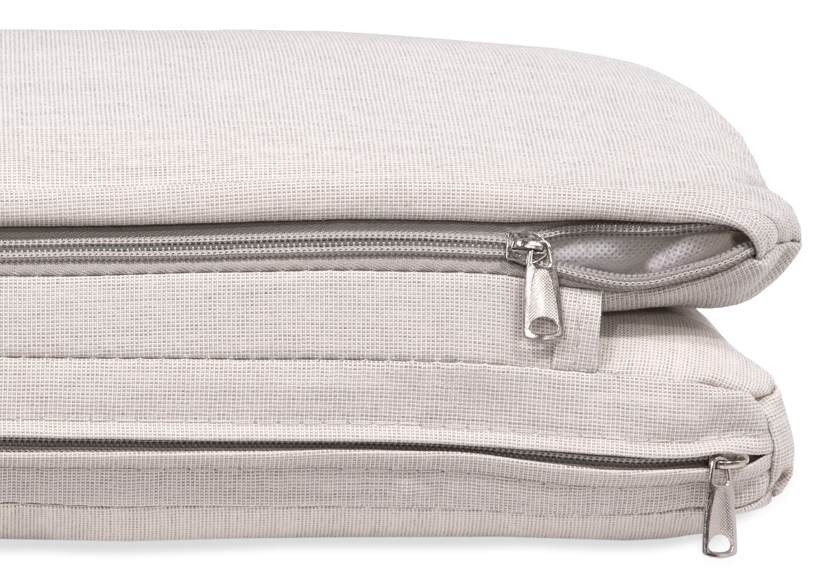 Poszewki wykonano z wytrzymałej tkaniny poliestrowej, która dobrze radzi sobie w warunkach zewnętrznych. Materiał szybko schnie po kontakcie z wodą i nie traci koloru pod wpływem promieniowania UV. Dzięki temu poduszki zachowują estetyczny wygląd i funkcjonalność przez cały sezon użytkowania.
