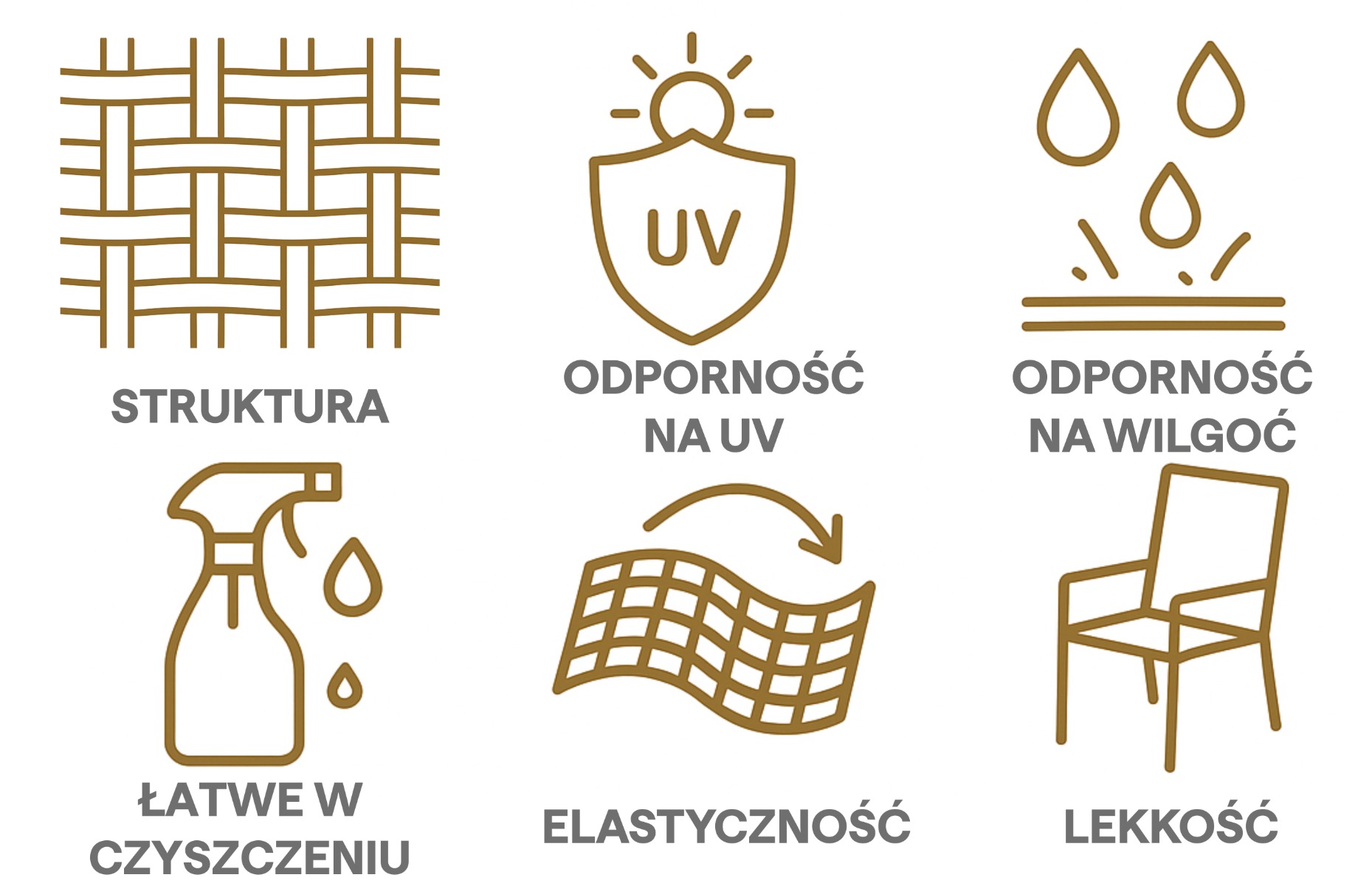 Technorattan łączy estetykę naturalnego splotu z odpornością na wilgoć i promieniowanie UV. Jest lekki, elastyczny i łatwy w pielęgnacji – wystarczy przetrzeć wilgotną ściereczką. Dzięki wysokiej trwałości zachowuje swój wygląd na lata, nawet przy codziennym użytkowaniu.