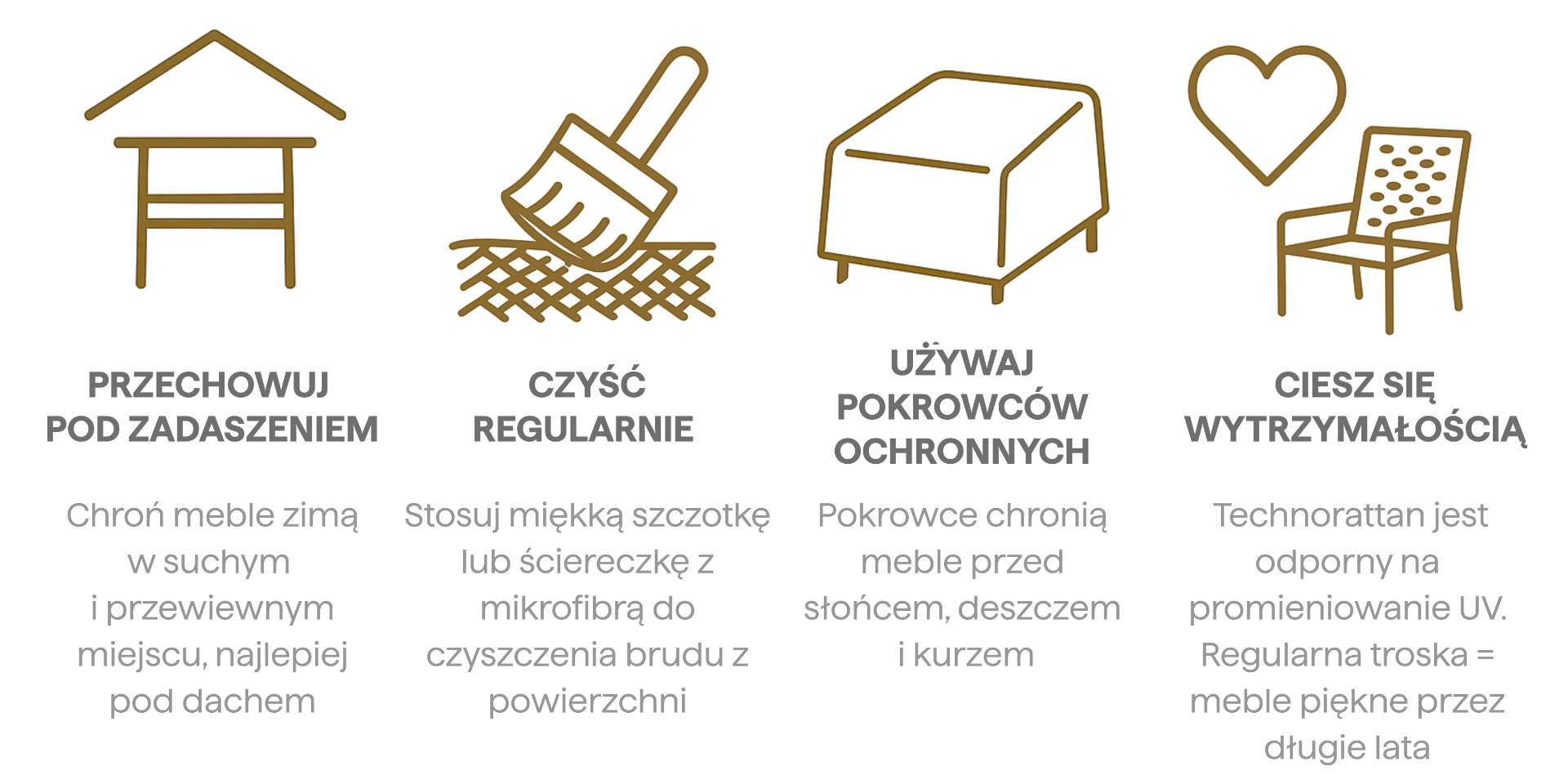 Technorattan to materiał o wysokiej odporności na warunki zewnętrzne, ale jak każde tworzywo ogrodowe, wymaga podstawowej troski. Aby przez wiele sezonów cieszyć się ich estetyką i wygodą, wystarczy pamiętać o kilku zasadach: