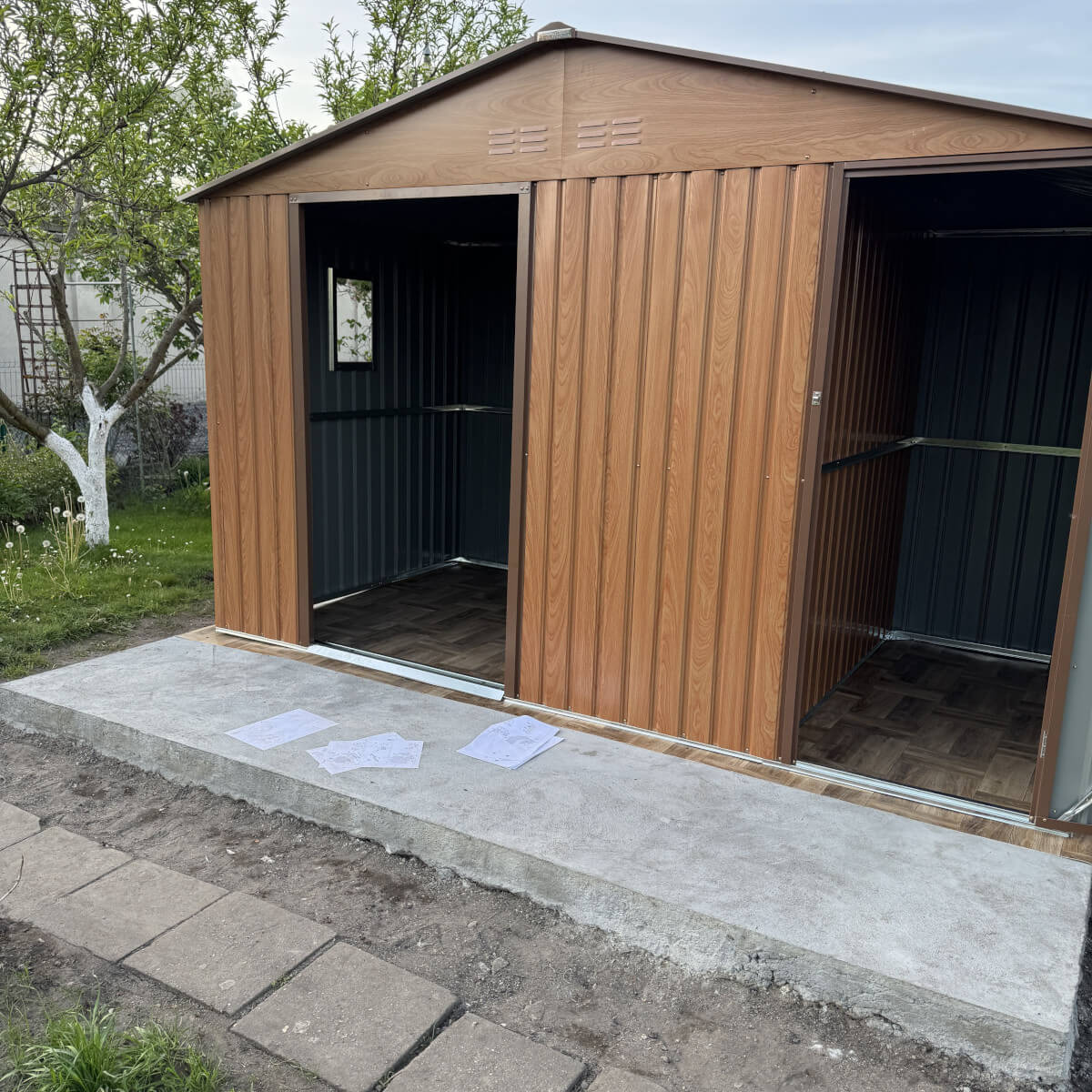 Domek narzędziowy nie posiada własnej podłogi, dlatego zalecamy przygotowanie odpowiedniej powierzchni pod montaż. Najlepszą opcją jest wykonanie wylewki betonowej o grubości 15-20 cm. Wylewka powinna być większa niż wymiary domku – powinna przekraczać obrys domku o co najmniej 10 cm. Taka nadwyżka powierzchni zapewni stabilność i ochronę przed wodą opadową, a także ułatwi montaż.