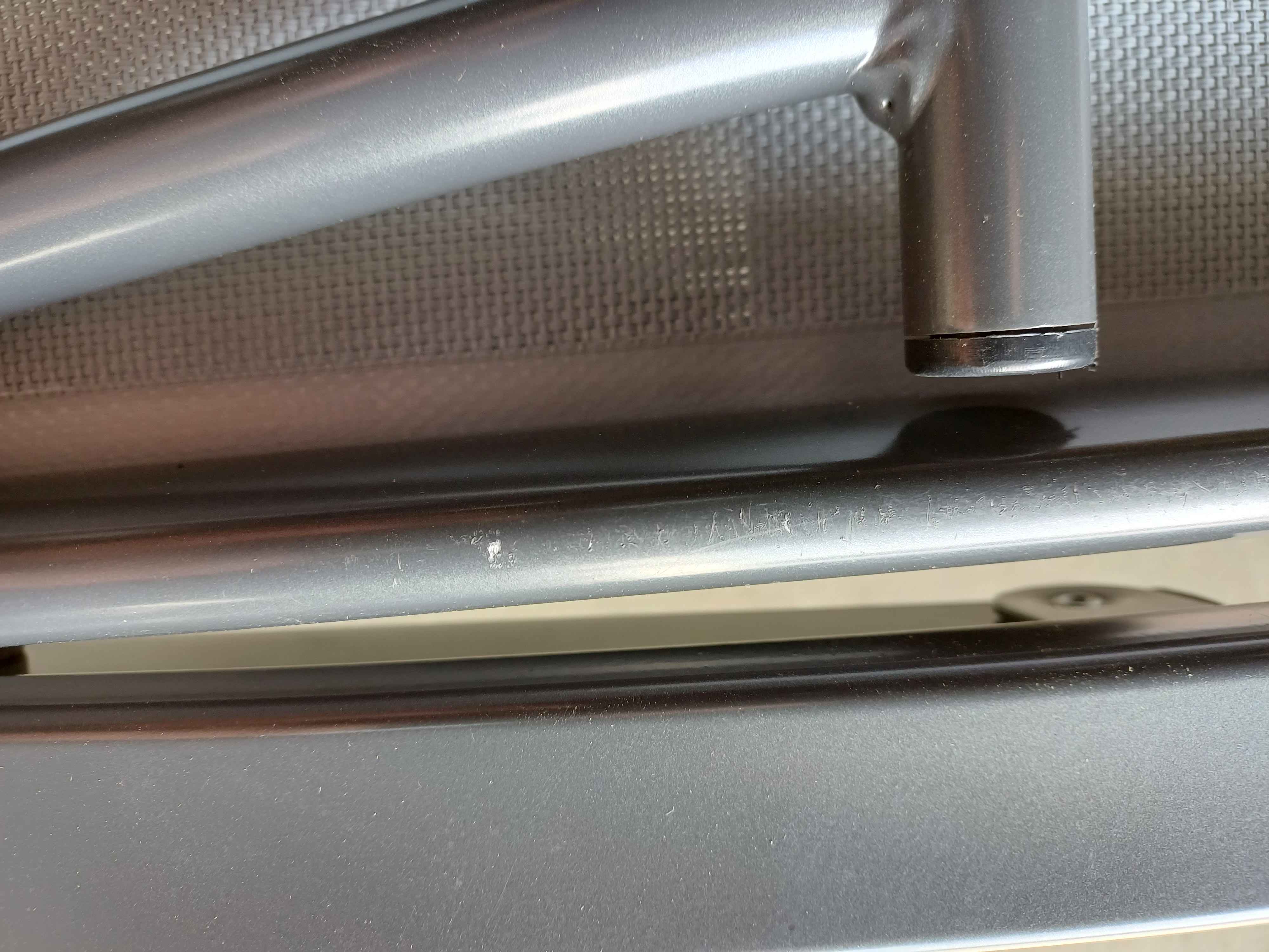 lekka i stabilna konstrukcja wykonana z aluminium w kolorze ciemnoszarym, malowana metodą proszkową