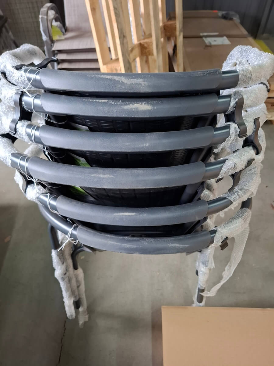krzesła są sztaplowane (składane jedno w drugie) co pozwala zaoszczędzić miejsca oraz ułatwia ich przechowywanie