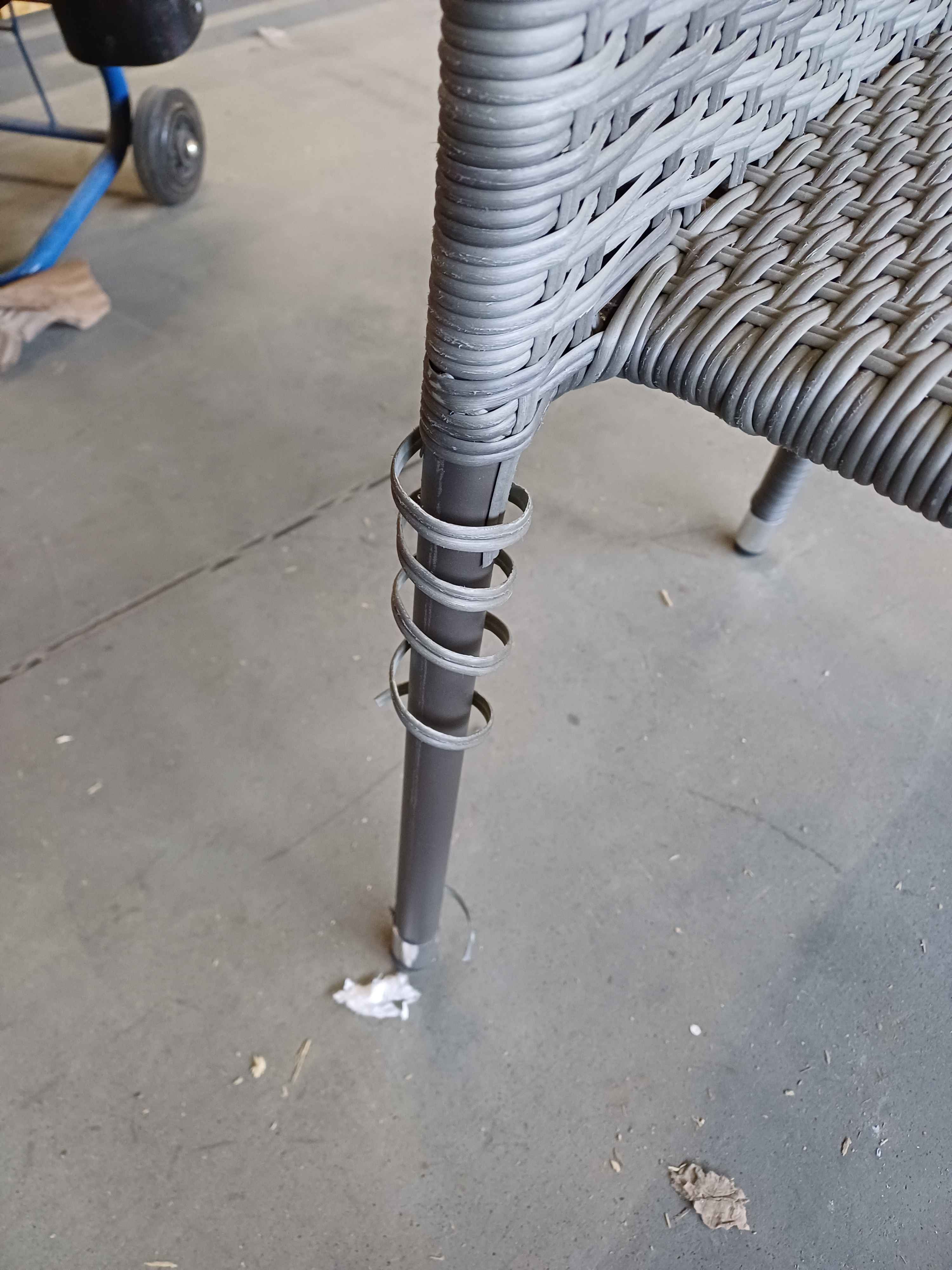 aluminiowe zakończenia nóg nadają im eleganckiego charakteru i zapobiegają rozwarstwieniu się wyplotu