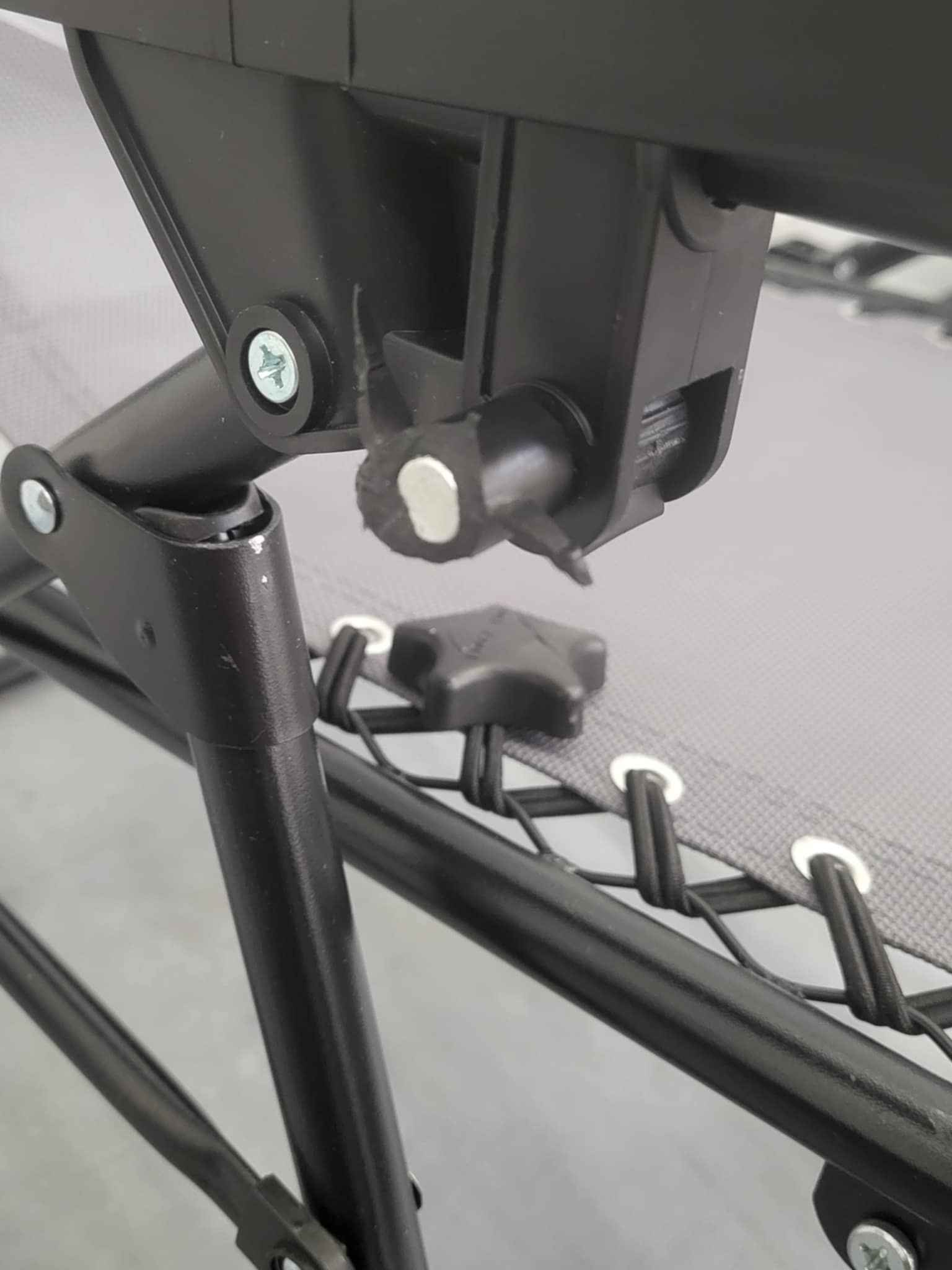z jednej strony niekompletne pokrętło do regulacji oparcia (system blokady).