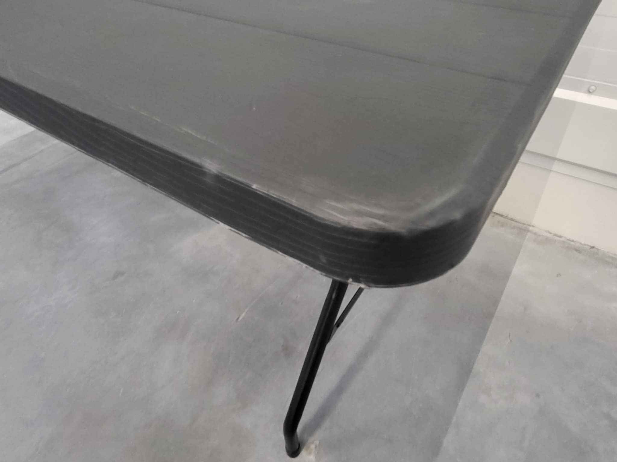 Blat stołu wykonany z wysokiej jakości tworzywa sztucznego HDPE o grubości 3,80 cm zapewnia wyjątkową odporność na uszkodzenia mechaniczne, co sprawia, że jest idealny do użytku zarówno wewnątrz, jak i na zewnątrz.