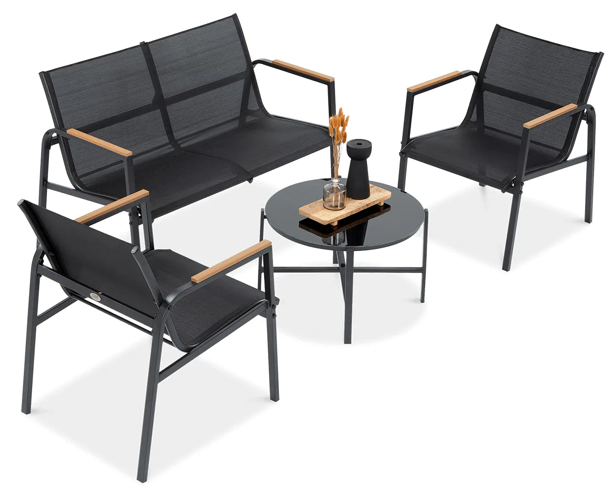 Zapraszamy do odkrycia wyjątkowego zestawu mebli ogrodowych MANGO CAFFE w kolorze czarnym. które łączą w sobie komfort, elegancję i trwałość. To nie tylko zestaw mebli ogrodowych - to prawdziwe doświadczenie błogiego wypoczynku, które odmieni każdy skrawek Twojej przestrzeni zielonej. Solidna rama ze stali galwanizowanej, stworzona z myślą o wytrzymałości w różnorodnych warunkach atmosferycznych, stanowi niezawodne fundamenty dla zestawu. Nie tylko emanuje trwałością, ale także zachwyca subtelnym designem. Stolik kawowy o wymiarach DIA65*H42cm stanie się centralnym punktem spotkań, gdzie aromatyczna kawa zamieni każde poranne chwile w ceremonię relaksu. Jego hartowana szklana powierzchnia o grubości 5 mm nie tylko dodaje elegancji, ale także gwarantuje długotrwałą jakość. W wygodnym fotelu każdy moment staje się niezwykły. Idealnie zaprojektowane wymiary siedziska zapewniają komfort na najwyższym poziomie. Tkanina textilene, użyta do produkcji, nie tylko prezentuje się olśniewająco, ale również jest łatwa w utrzymaniu czystości. Sofa o wymiarach W119D70H81cm to miejsce, gdzie spotkania nabierają wyjątkowego klimatu. Szerokość siedziska 112cm, wysokość siedziska 38cm oraz głębokość siedziska 45cm sprawiają, że relaks staje się sztuką. Drewno polywood na podłokietnikach nadaje zestawowi charakteru. MANGO CAFFE Black to nie tylko meble ogrodowe - to ceremonia relaksu na świeżym powietrzu. Przenieś się do świata wyjątkowego designu, połączonego z funkcjonalnością i pozwól, by Twój ogród stał się przestrzenią niezapomnianych chwil w otoczeniu elegancji i spokoju.