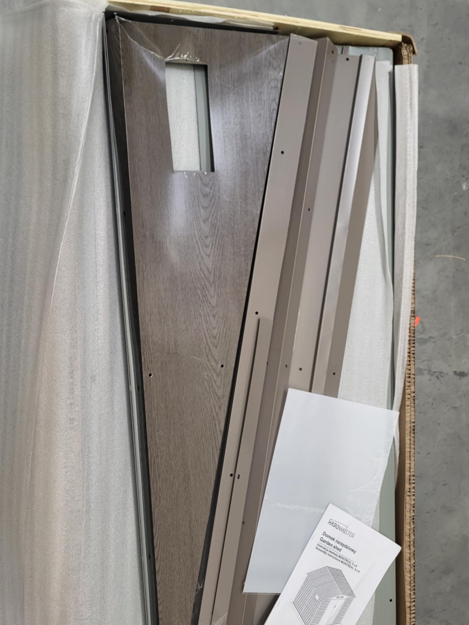 Przed rozpoczęciem montażu upewnij się, że wylewka betonowa jest odpowiednio wyrównana i całkowicie sucha. Montaż domku na nierównej powierzchni może prowadzić do niestabilności konstrukcji. W zestawie nie znajdują się kotwy montażowe do podłoża.