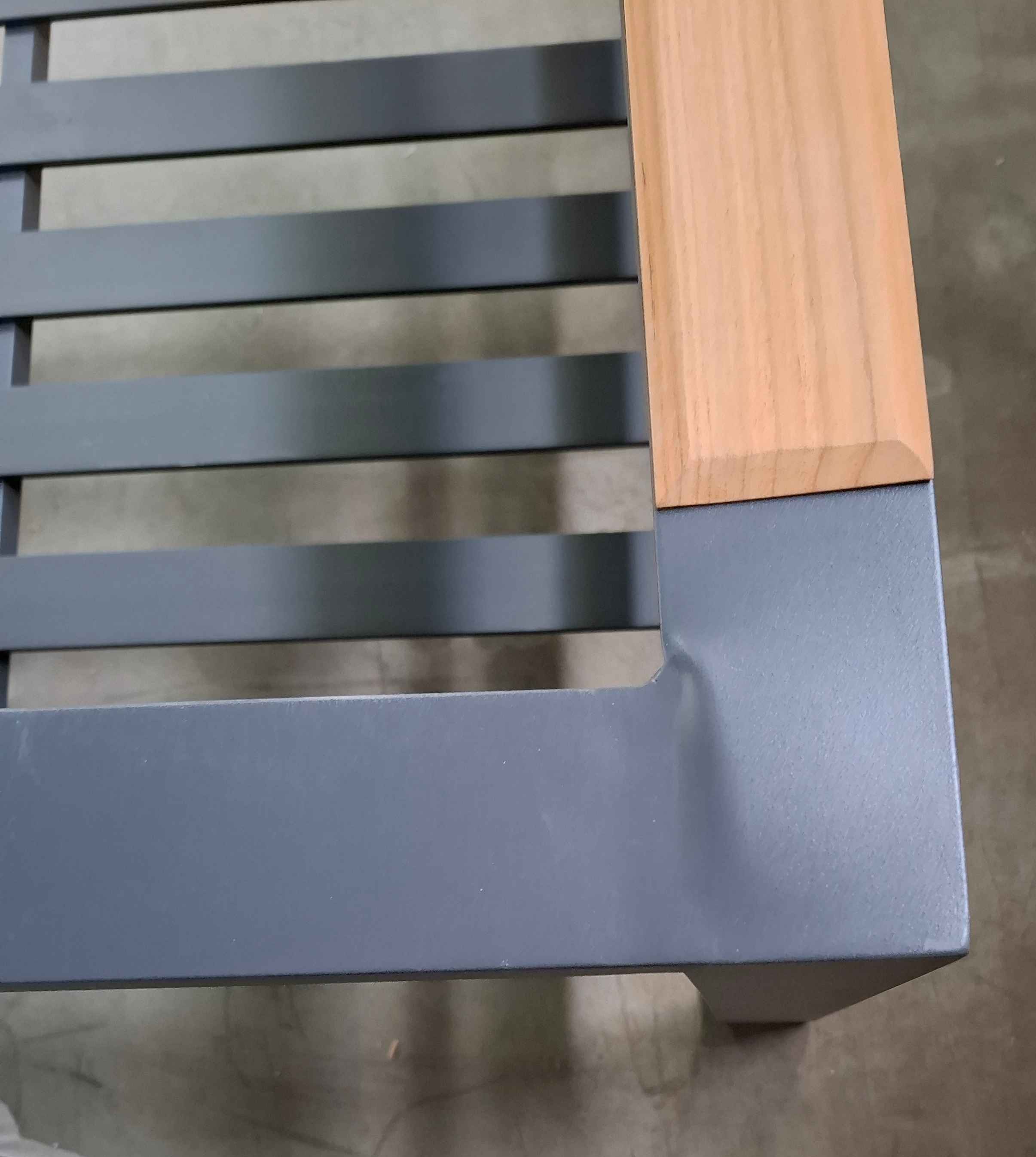 solidna rama i nogi wykonane z aluminium malowanego proszkowo, co zapewnia stabilność i lekkość konstrukcji oraz całkowitą odporność na rdzę