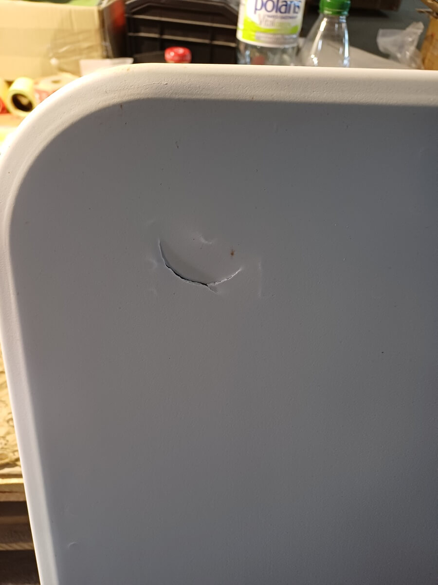 - pęknięty blat w części narożnej stołu