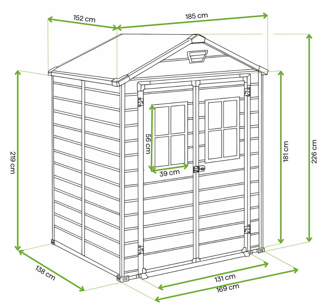 Domek ogrodowy Keter SCALA 6x5DD Dark Grey to praktyczne i solidne rozwiązanie do przechowywania narzędzi, sprzętów ogrodowych oraz sezonowych akcesoriów. Wykonany z trwałego tworzywa sztucznego o strukturze imitującej drewno (WOOD EFFECT), łączy nowoczesny wygląd z wysoką funkcjonalnością. Dwuskrzydłowe drzwi, okna i system wentylacji ułatwiają dostęp do wnętrza, zapewniają dostęp światła dziennego i prawidłową cyrkulację powietrza. Wytrzymała konstrukcja oraz odporność na niekorzystne warunki atmosferyczne gwarantują ochronę zawartości przez cały rok. Montaż domku jest prosty i możliwy do wykonania nawet samodzielnie. Produkt objęty jest 10-letnią gwarancją producenta, co stanowi potwierdzenie jego jakości i trwałości.