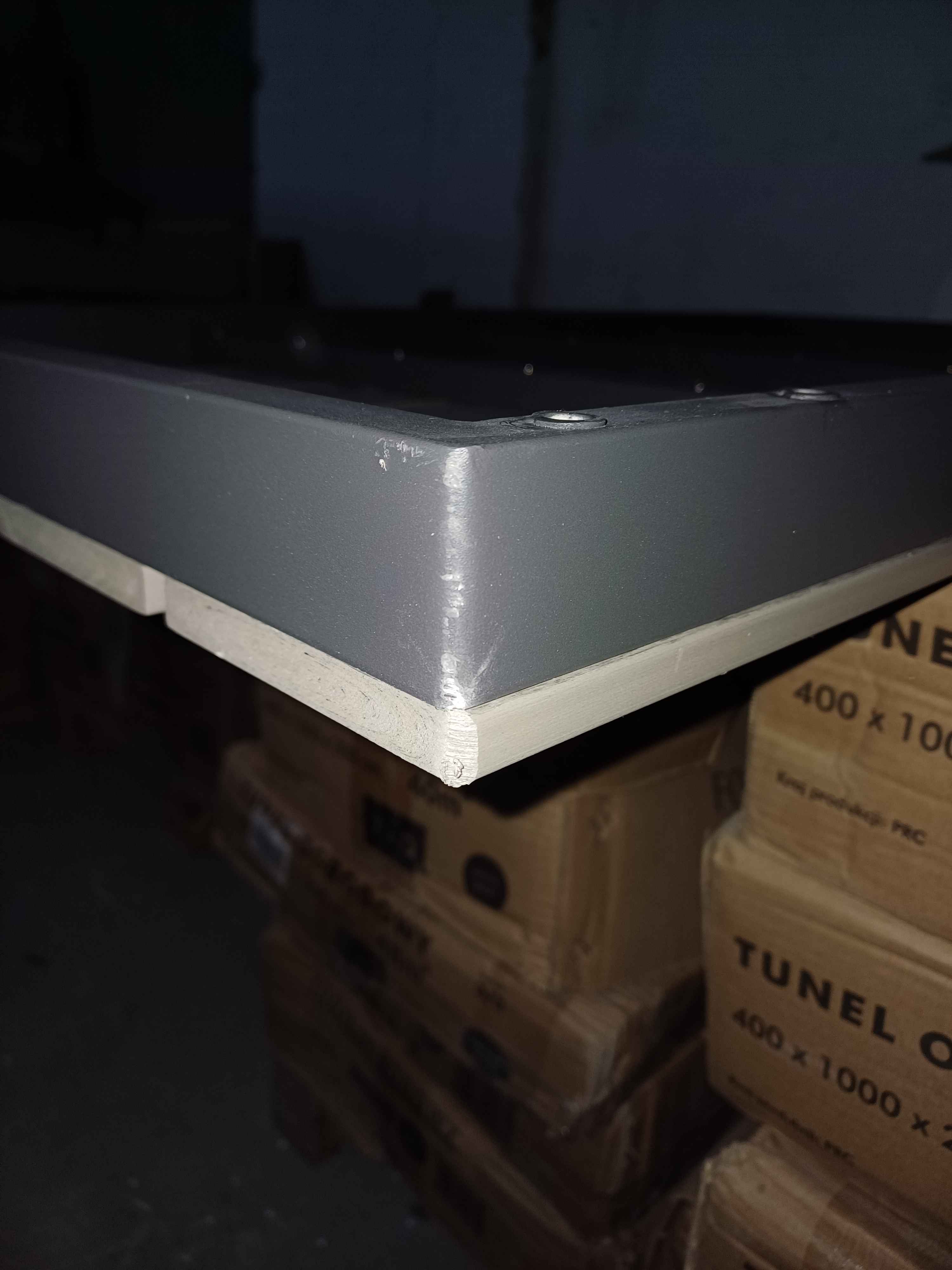 dwa rogi stołu z delikatnymi zarysowaniami.
