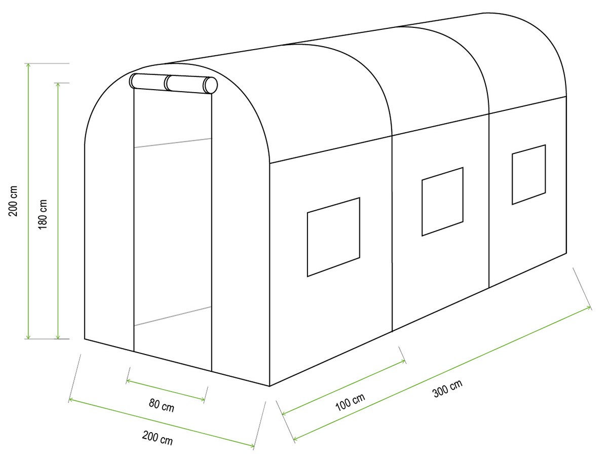 Tunel foliowy to idealne rozwiązanie dla miłośników upraw. Zapewnia roślinom optymalne warunki, chroniąc przed niekorzystnymi warunkami pogodowymi i poprawiając plonowanie. Model o długości 300 cm i wysokości 200 cm umożliwia swobodne poruszanie się. Posiada 6 wentylacyjnych okien z moskitierami oraz szerokie, rolowane drzwi. Konstrukcja z ocynkowanych profili oraz folia UV4 z zieloną siatką PP gwarantują trwałość i odporność na uszkodzenia.