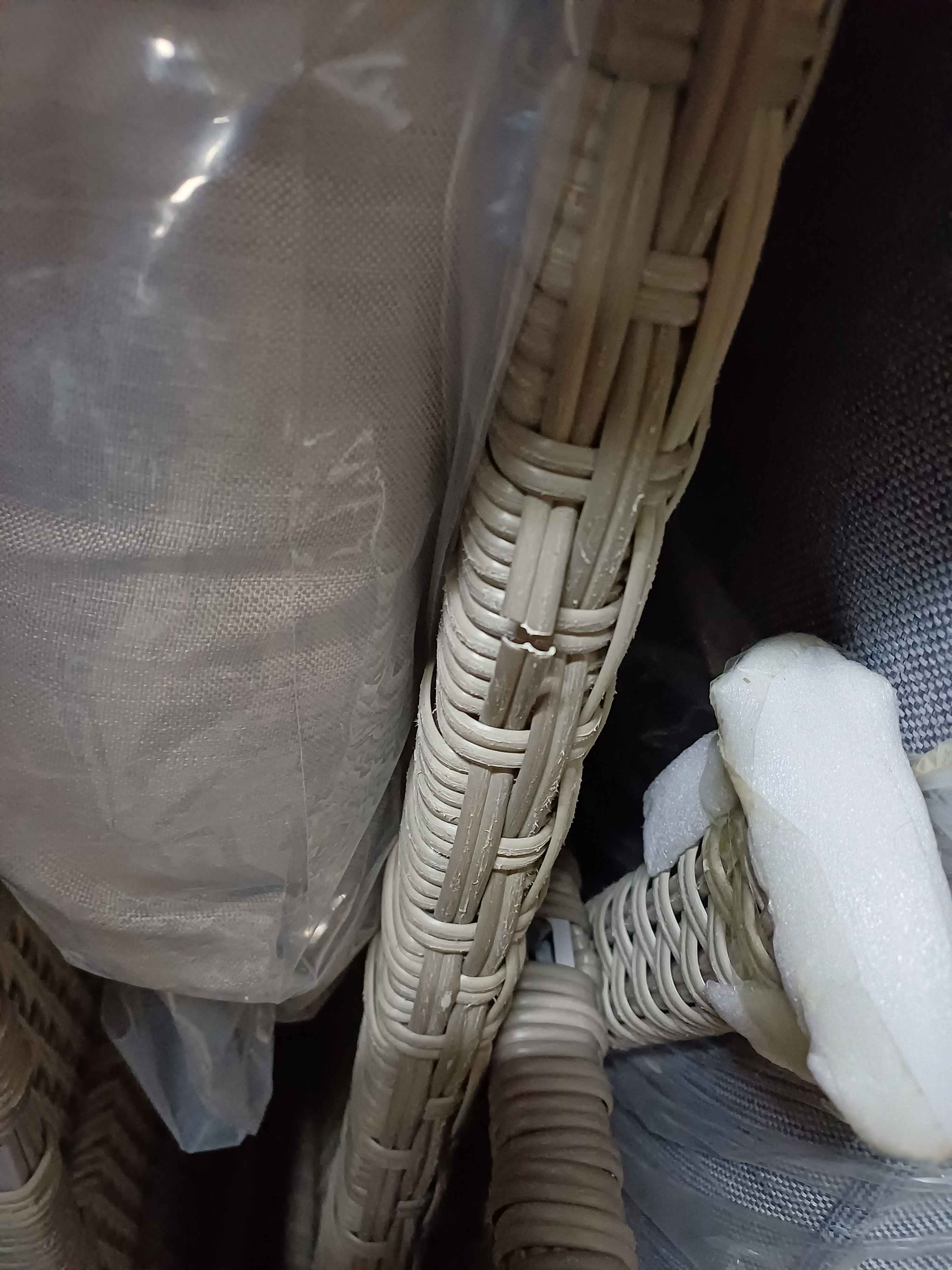 przecięty ratan na oparciu sofy