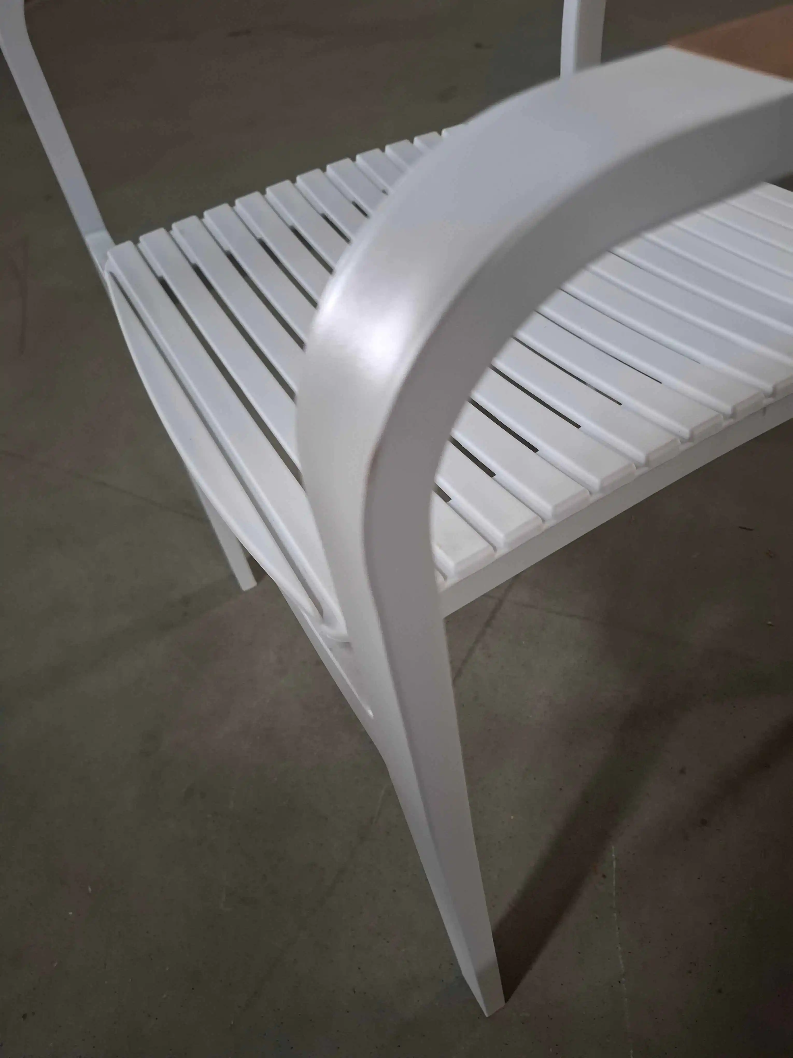 Aluminiowa rama malowana proszkowo oraz siedzisko i oparcie z wysokiej jakości plastiku sprawiają, że krzesło jest odporne na deszcz, grad, wiatr oraz intensywne promieniowanie słoneczne.