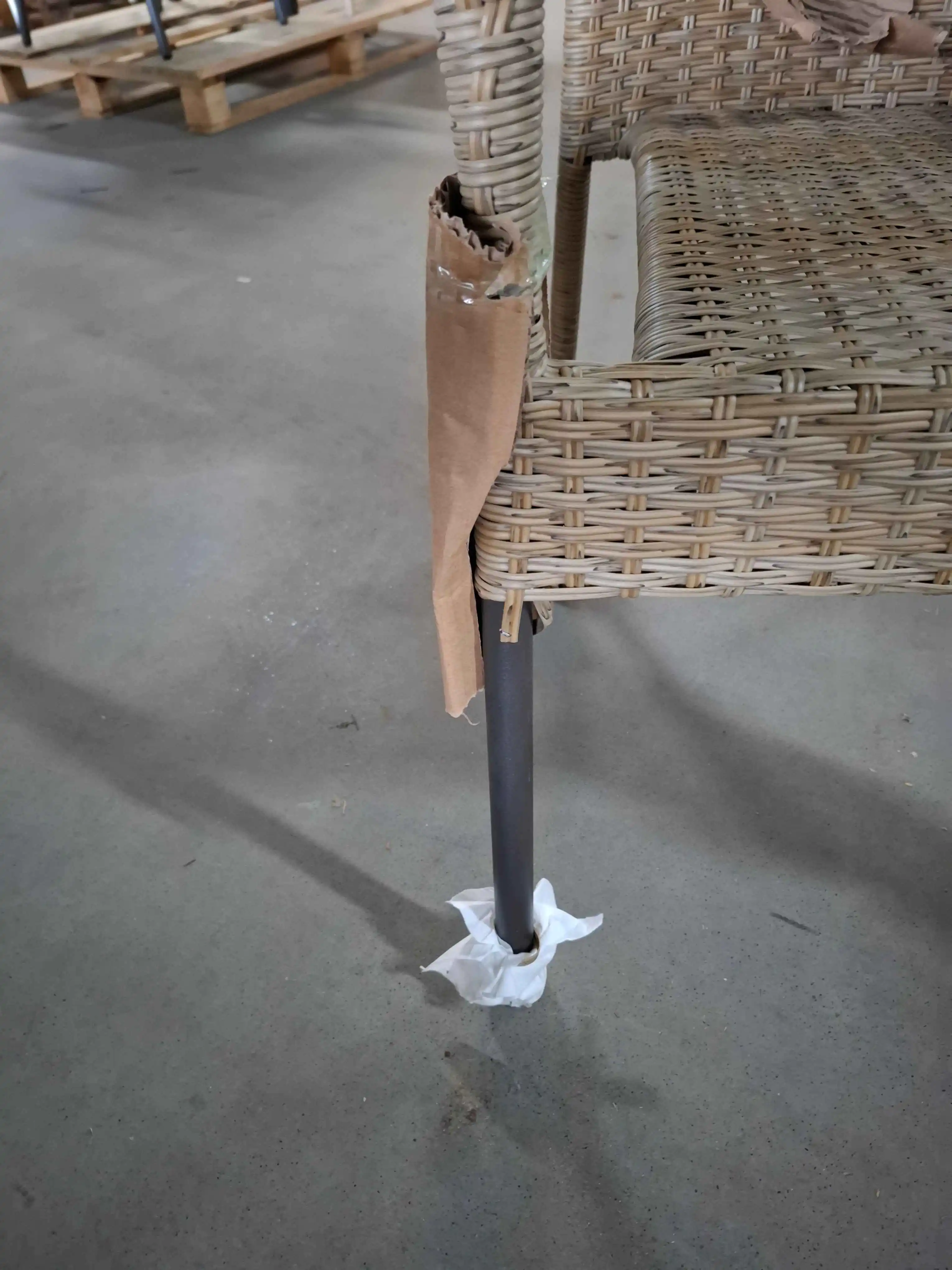 aluminiowe zakończenia nóg nadają im eleganckiego charakteru i zapobiegają rozwarstwieniu się wyplotu