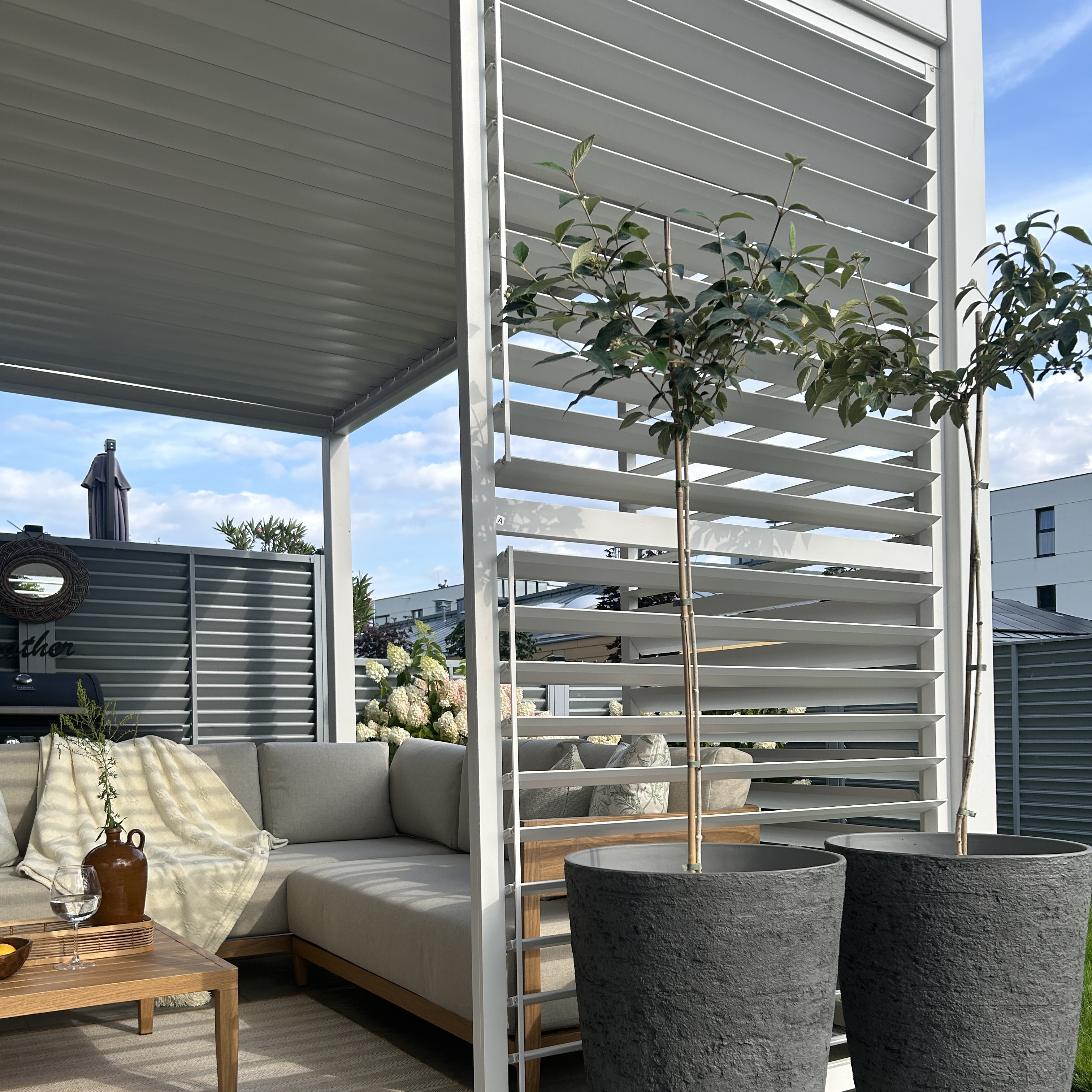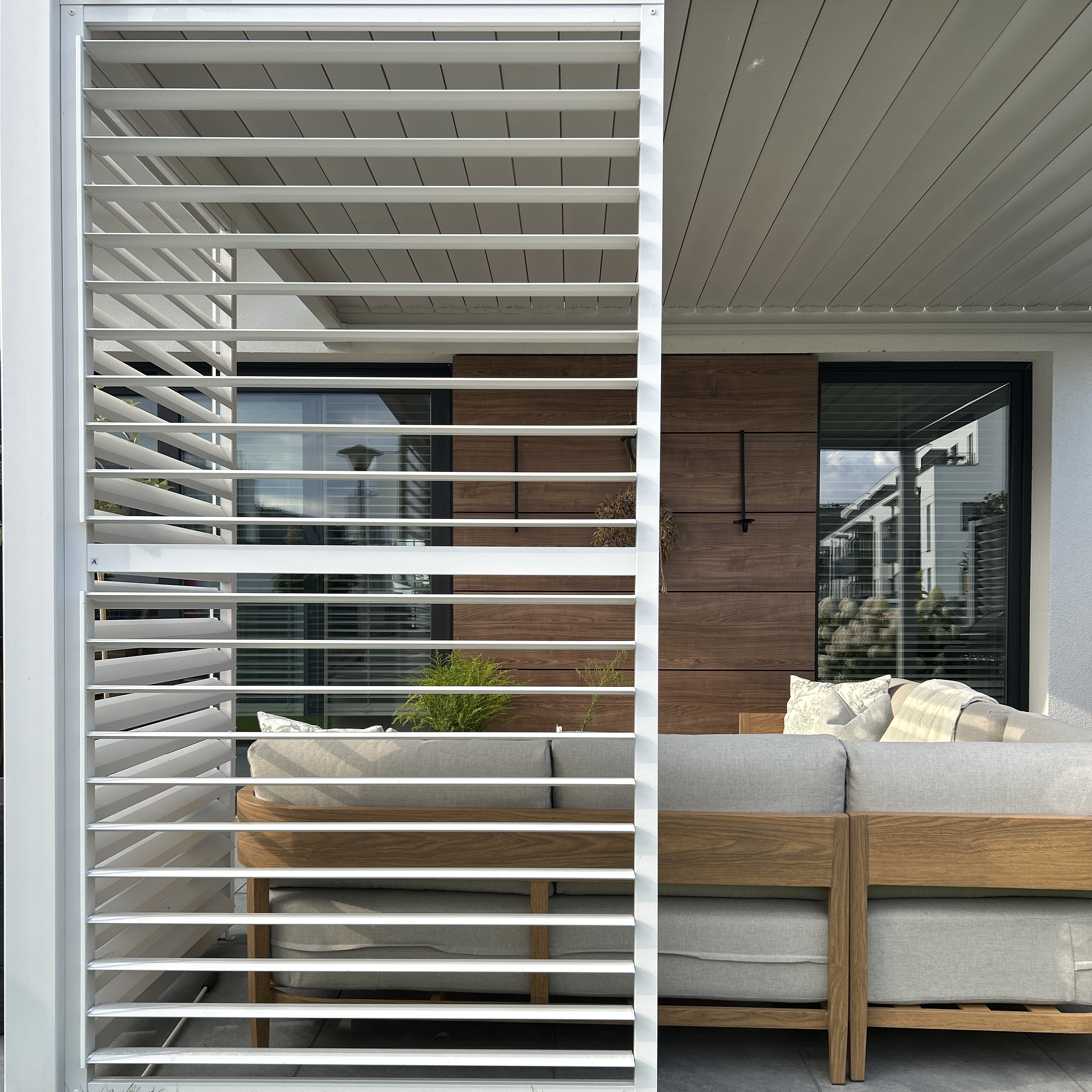 Panel żaluzjowy marki Gutroof to doskonałe rozwiązanie, które chroni przed wiatrem i deszczem, zapewniając prywatność i wygodę. Z dwoma niezależnymi segmentami możesz łatwo dopasować stopień otwarcia, korzystając z pergoli w każdą pogodę, nie tracąc dostępu do naturalnego światła i świeżego powietrza.