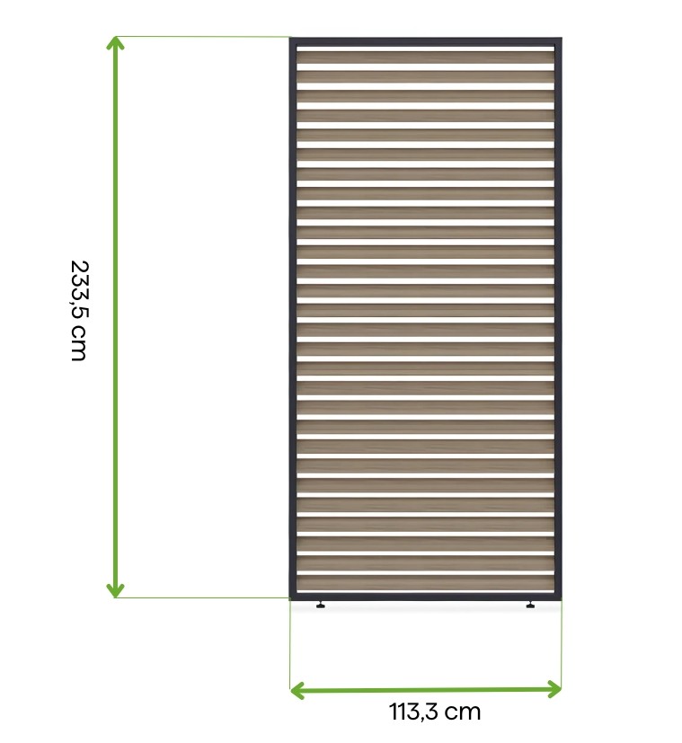 Panel żaluzjowy poziomy do pergoli ELEGANCE/DELUXE/FUSION 1.2 m Woodgrain to trwały i estetyczny element do pergoli, zapewniający cień, prywatność i nowoczesny wygląd. Aluminiowa konstrukcja odporna na pogodę oraz wykończenie Woodgrain gwarantują wieloletnie użytkowanie. Modułowa budowa umożliwia swobodne dopasowanie panelu do aranżacji ogrodu.