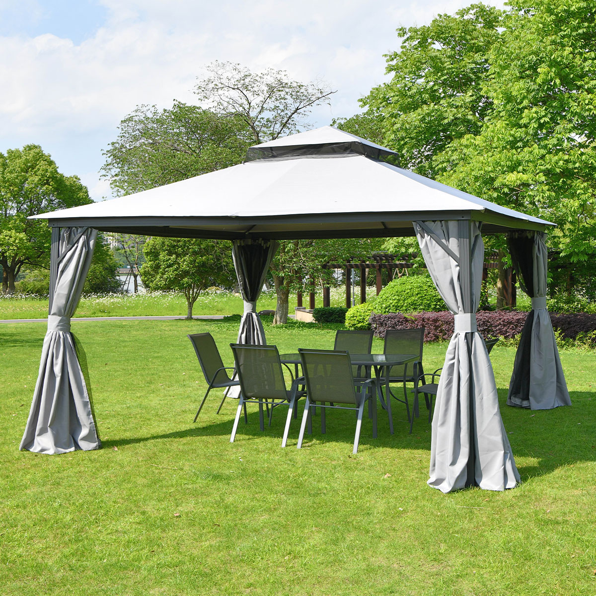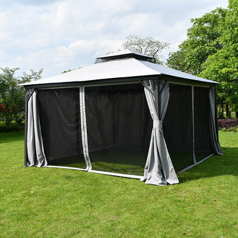 Pawilon ogrodowy z moskitierą i zasłonami VANCOUVER 4x4 Light Grey - Hardmaister