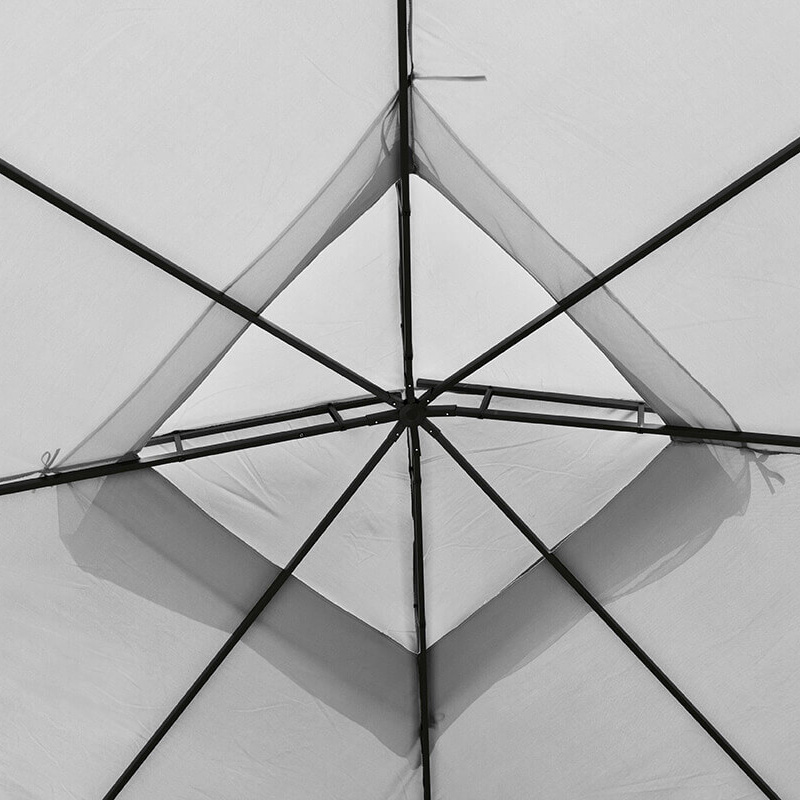 Pełna moskitiera otaczająca pawilon skutecznie zabezpiecza przed owadami, nie ograniczając przy tym przewiewności i komfortu wypoczynku.