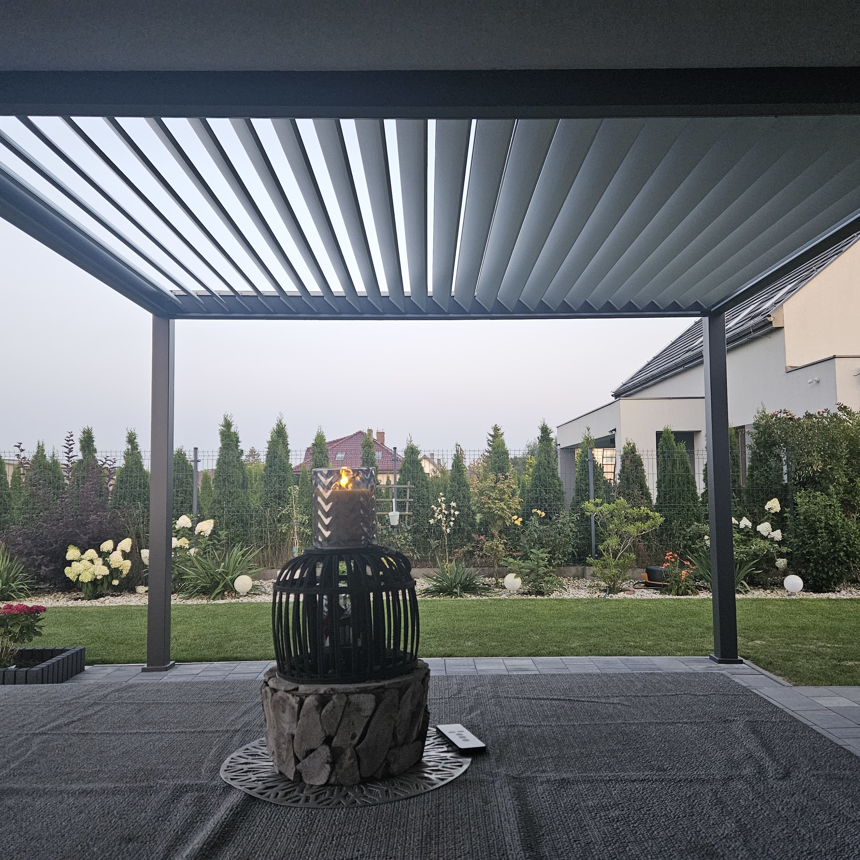 Automatyczne lamele dachowe to nowoczesne rozwiązanie, które pozwala dostosować warunki pod pergolą do własnych preferencji. Wystarczy jedno naciśnięcie pilota, aby zamknąć lamele i stworzyć przyjemny cień lub je otworzyć, wpuszczając więcej światła i świeżego powietrza. To praktyczne rozwiązanie zapewnia komfortowy wypoczynek bez względu na pogodę.