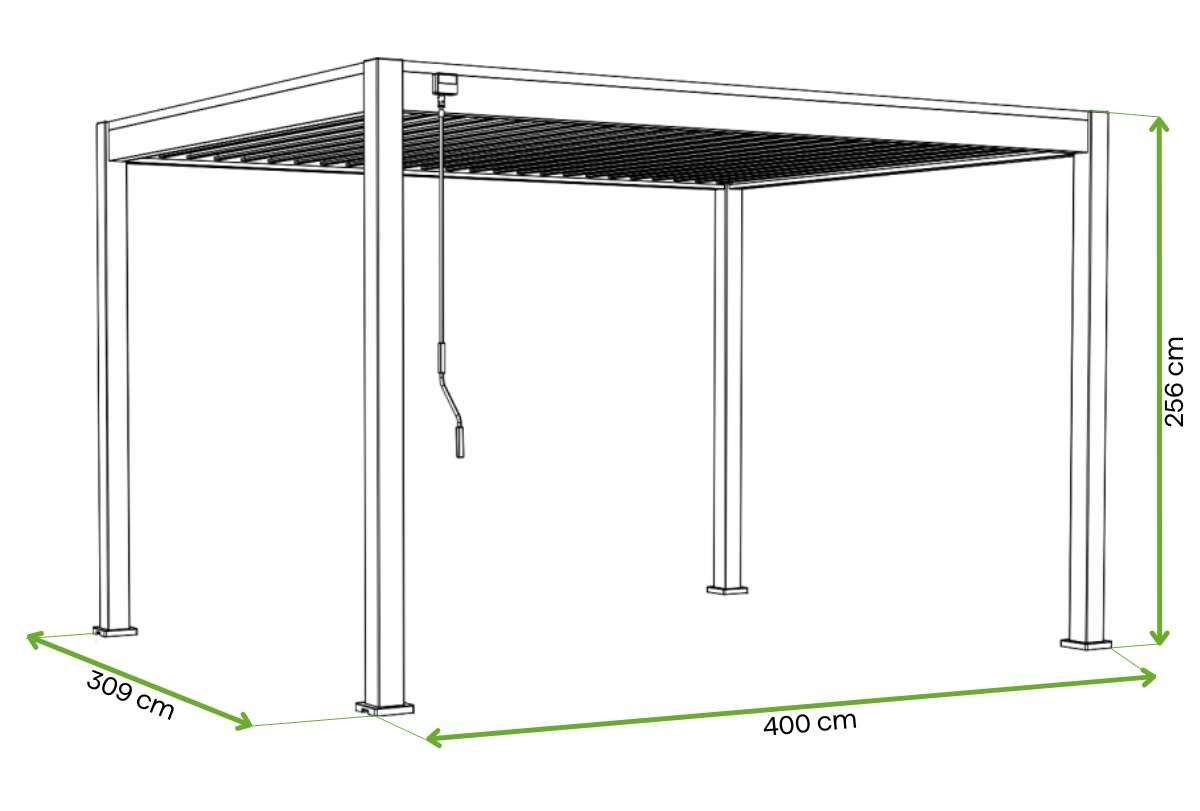 Dach pergoli wyposażono w innowacyjny system dwuwarstwowych lameli, które nachodzą na siebie, tworząc skuteczną barierę ochronną. Taka konstrukcja doskonale chroni zarówno przed intensywnym słońcem, jak i opadami deszczu, zapewniając komfortowe warunki do wypoczynku na świeżym powietrzu. Dzięki temu możesz cieszyć się relaksem niezależnie od zmienności pogody.