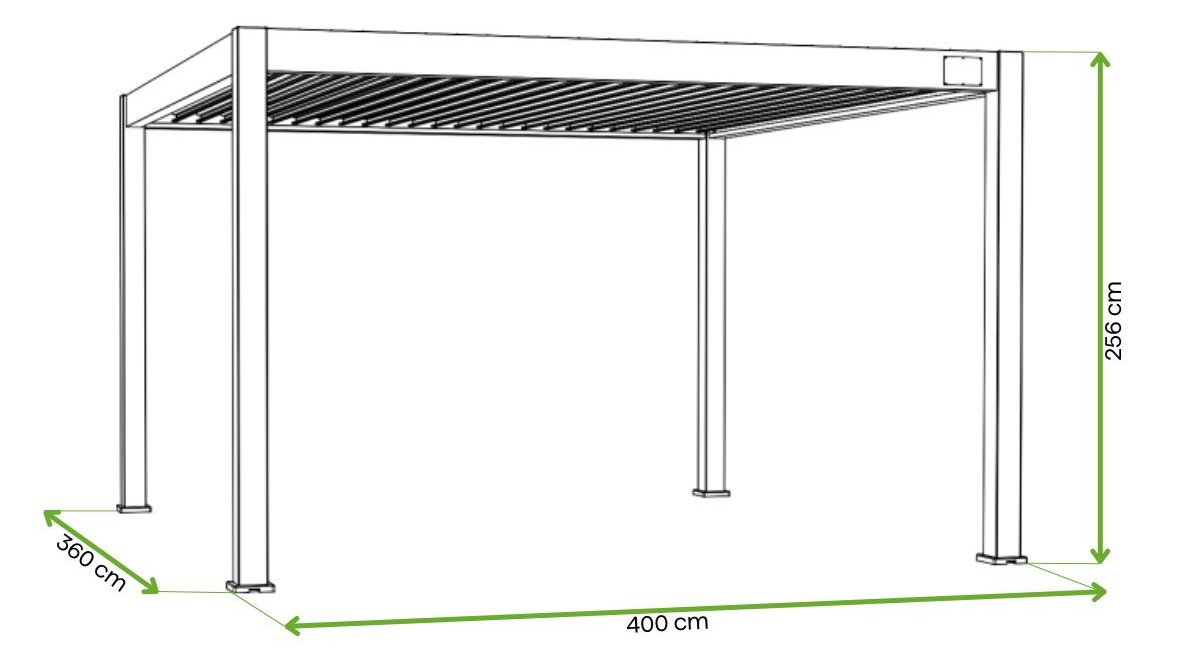 Podczas montażu pergoli należy zachować niewielki spadek – około 0,5˚, co odpowiada 1 cm na każde 1 metr długości – aby zapewnić skuteczne odprowadzanie wody deszczowej. Takie rozwiązanie zapobiega jej gromadzeniu się na dachu, co zwiększa komfort i trwałość konstrukcji. Więcej informacji znajduje się w Instrukcji.