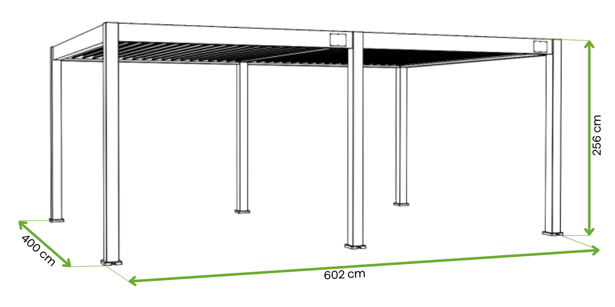 Podczas montażu pergoli należy zachować niewielki spadek – około 0,5˚, co odpowiada 1 cm na każde 1 metr długości – aby zapewnić skuteczne odprowadzanie wody deszczowej. Takie rozwiązanie zapobiega jej gromadzeniu się na dachu, co zwiększa komfort i trwałość konstrukcji. Więcej informacji znajduje się w Instrukcji.