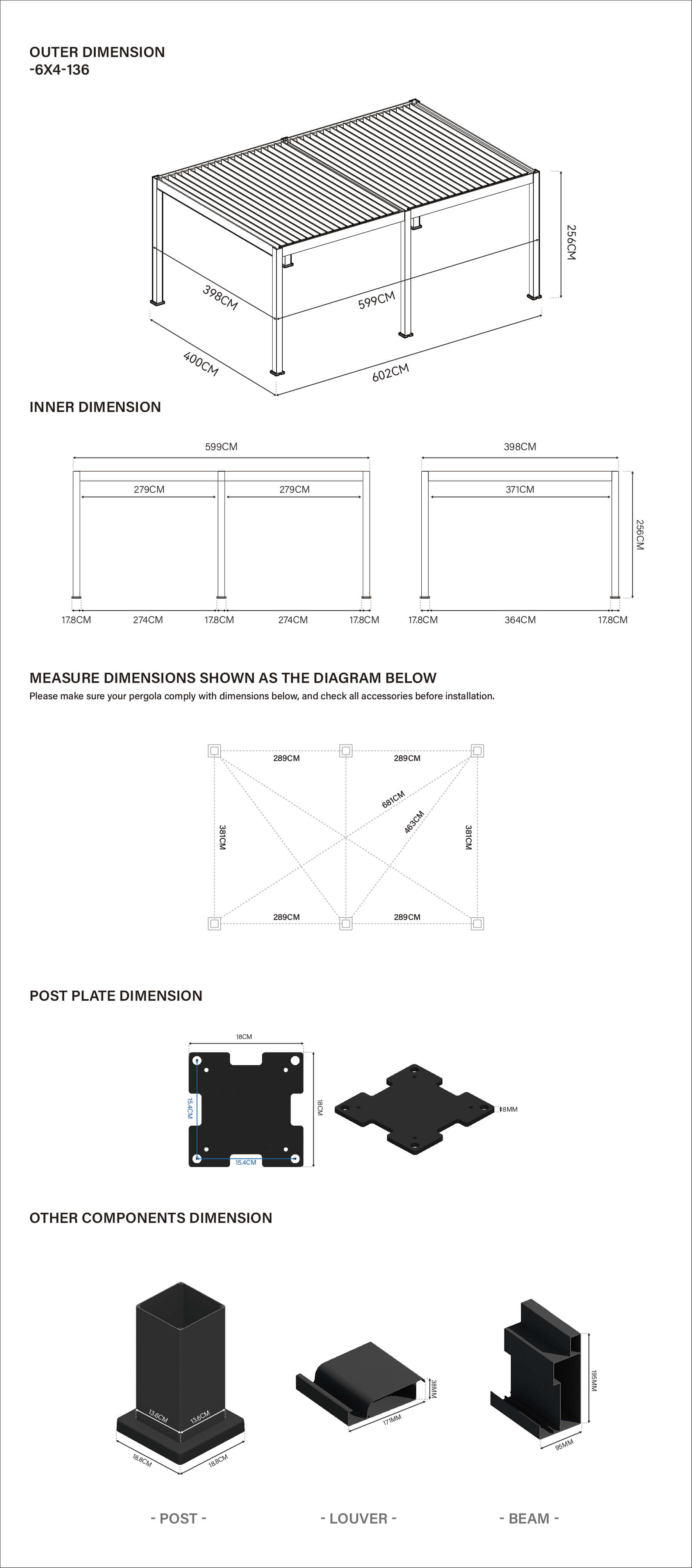 Montaż pergoli jest łatwy i nie wymaga specjalistycznych umiejętności, choć ze względu na rozmiar konstrukcji warto przeprowadzać go z pomocą 2-3 osób. Wszystkie niezbędne elementy montażowe są dołączone do zestawu, co ułatwia instalację.
