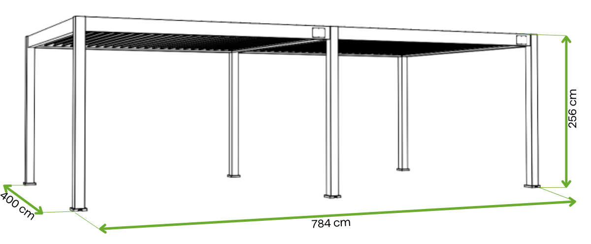 Wymiary pergoli: 400 × 784 × 256 cm