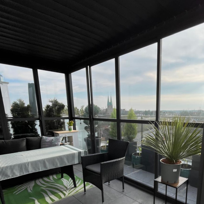 Pergola ogrodowa na taras Premium 3x4 Anthracite marki Gutroof to eleganckie i funkcjonalne zadaszenie, idealne do stworzenia przytulnej przestrzeni na świeżym powietrzu. Wykonana z wysokiej jakości aluminium, zapewnia trwałość i odporność na warunki atmosferyczne. Ruchome stalowe lamele umożliwiają regulację nasłonecznienia, dostosowując poziom cienia do indywidualnych potrzeb. W odróżnieniu od modelu Classic, pergola Premium oferuje możliwość doboru dodatkowych akcesoriów, takich jak drzwi przesuwne, rolety oraz panele żaluzjowe, co pozwala na pełne dostosowanie przestrzeni do własnych preferencji.
