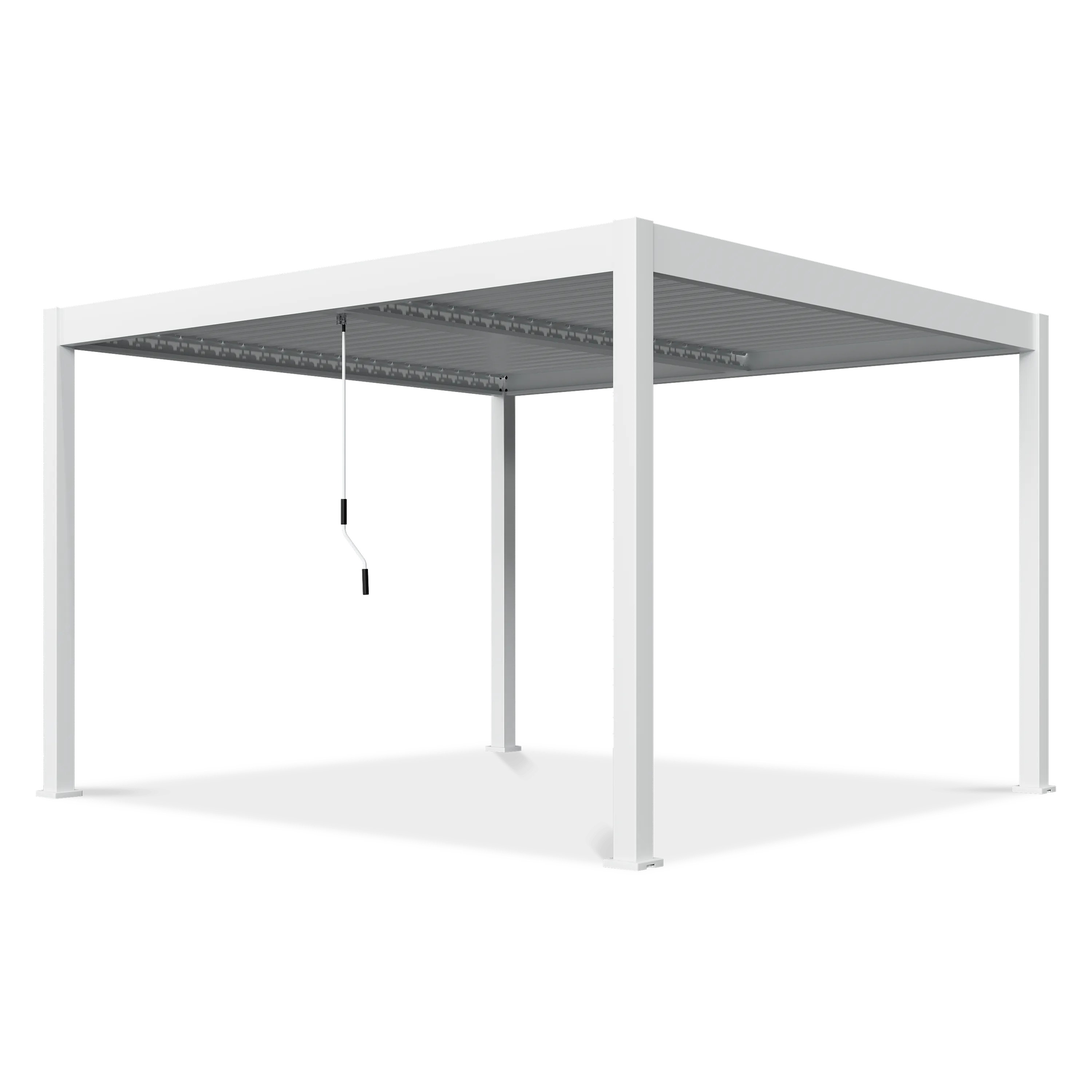 Manualna regulacja lameli zapewnia pełną i natychmiastową kontrolę nad ilością światła. Możesz szybko i wygodnie ustawić lamele, aby stworzyć cień lub wpuścić więcej słońca. Lekki i intuicyjny mechanizm gwarantuje, że codzienne dostosowywanie warunków pod pergolą jest proste i nie wymaga wysiłku.