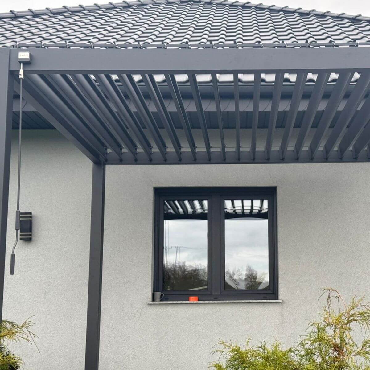 Manualna regulacja lameli pozwala na precyzyjne dostosowanie ilości światła pod pergolą. W upalne dni możesz zapewnić sobie przyjemny cień, a gdy zechcesz więcej słońca, wystarczy odpowiednio ustawić lamele. Intuicyjny mechanizm działa płynnie, umożliwiając szybkie dopasowanie warunków do aktualnej pogody.