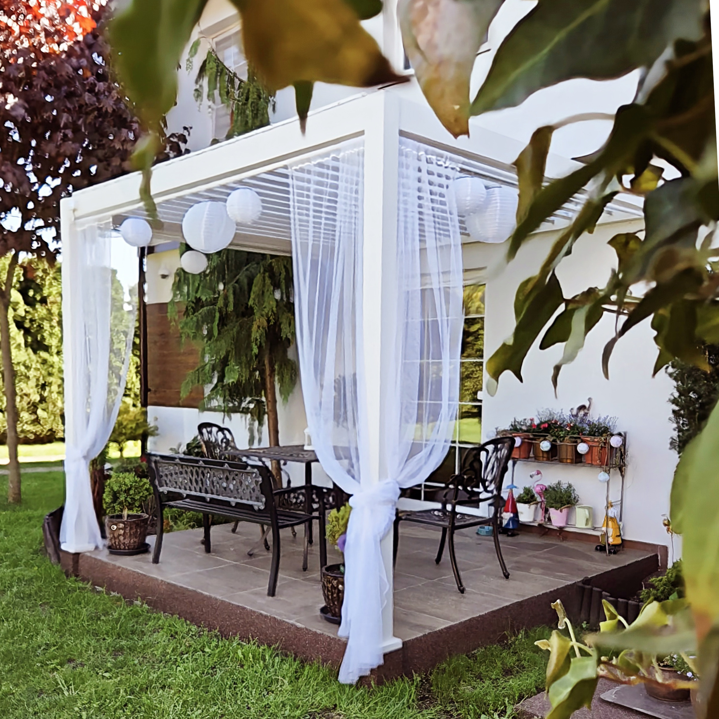 Ręcznie sterowane lamele pozwalają na łatwe dostosowanie nasłonecznienia pod pergolą. W zależności od warunków pogodowych możesz bez trudu zapewnić sobie cień lub wpuszczać więcej światła. System obsługuje się intuicyjnie i działa bez oporu.