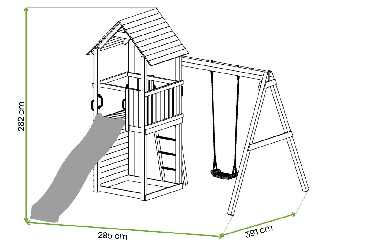 Wymiary placu zabaw: 391 x 285 x 282 cm