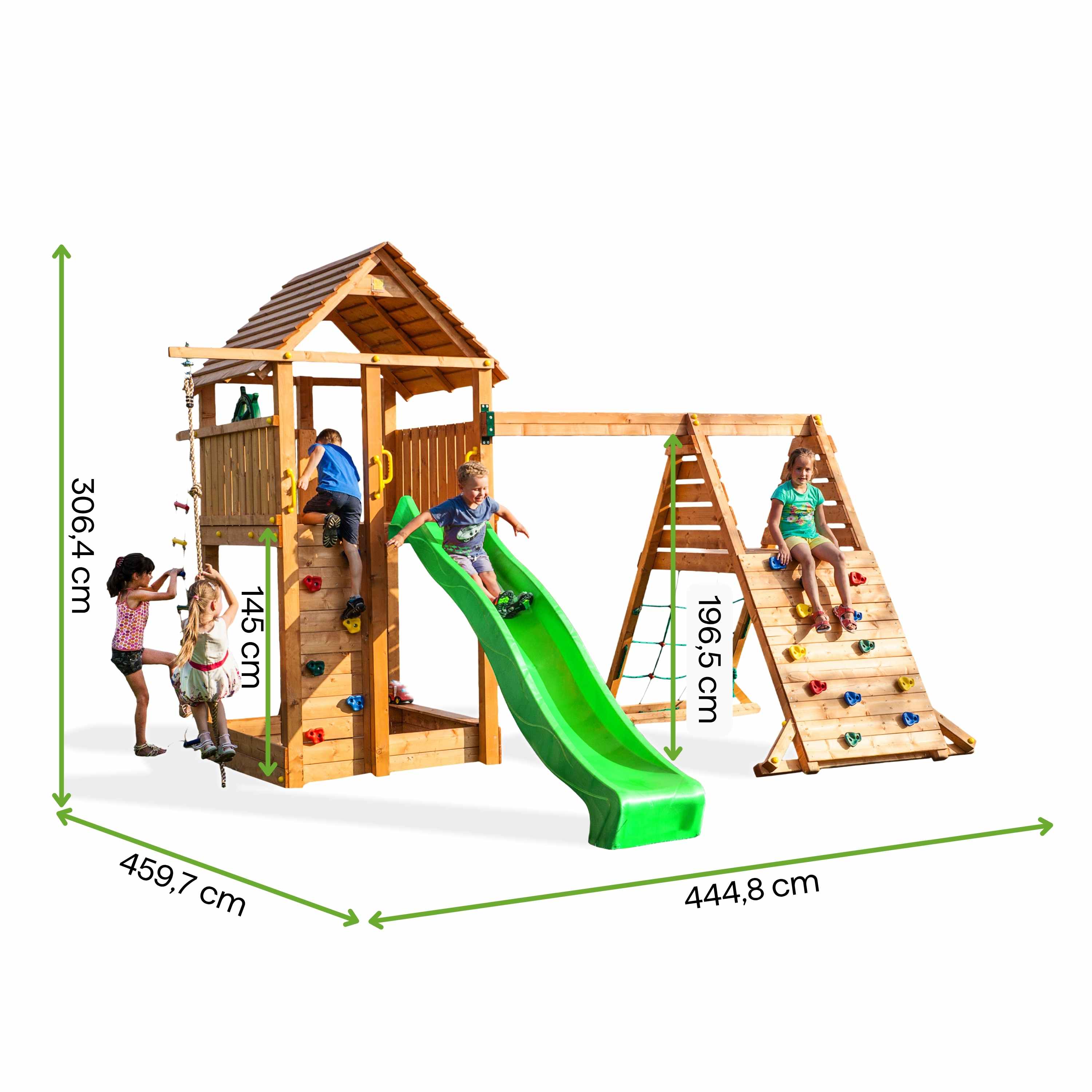 Solidność XXL: masa ponad 380 kg gwarantuje pełną stabilność podczas intensywnych zabaw dużej grupy dzieci