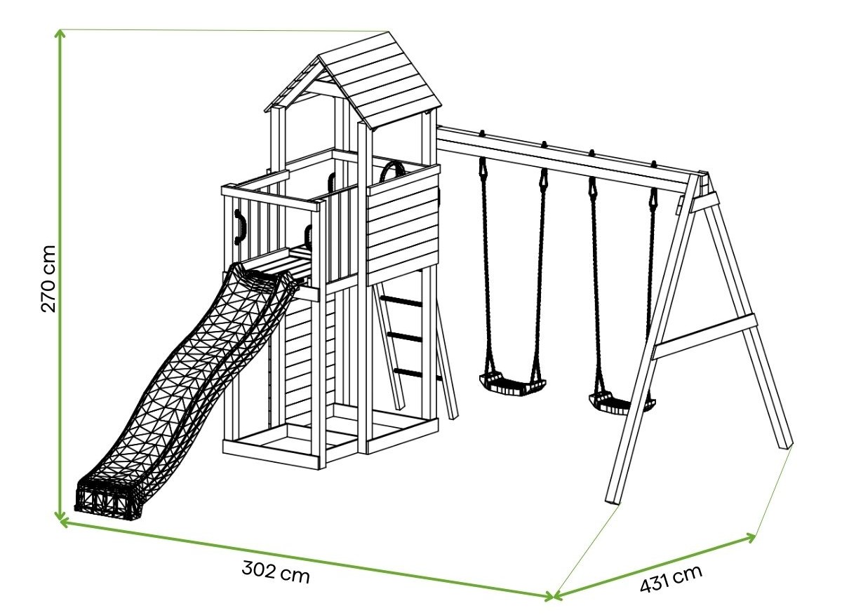 Wymiary placu zabaw: 431 x 302 x 270 cm