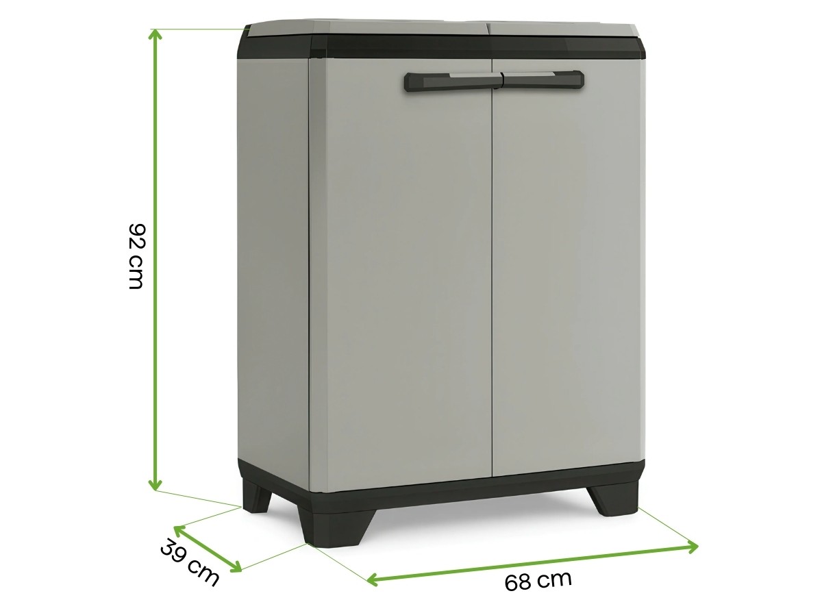 Pojemnik do segregacji Planet Recycling Cabinet to praktyczne i trwałe rozwiązanie do wygodnego sortowania odpadów. Lekka, a zarazem odporna na pogodę konstrukcja z tworzywa mieści trzy 35-litrowe kosze, które umożliwiają uporządkowaną segregację. System wygodnego otwierania i kompaktowa forma sprawiają, że pojemnik idealnie pasuje do domu, garażu lub przestrzeni gospodarczej.