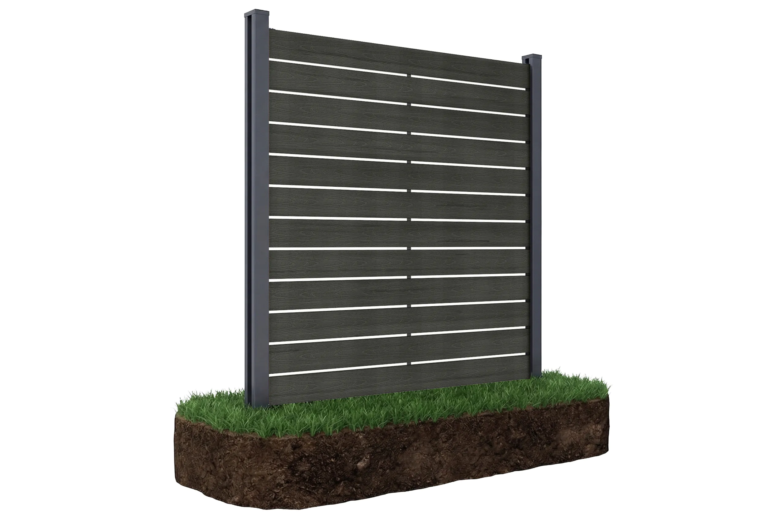 Przęsło ogrodzeniowe do mocowania na miękkim podłożu 1,8 m NEO Antracite marki Gutroof to kwintesencja nowoczesnego designu i trwałości. Ogrodzenie kompozytowe WPC w głębokim kolorze antracytu, o szczotkowanej strukturze, łączy prestiżowy wygląd drewna z odpornością na promieniowanie UV i zmienne warunki pogodowe. Aluminiowa konstrukcja ze stalowymi wspornikami gwarantuje stabilność w gruncie. Subtelne prześwity zapewniają prywatność bez efektu przytłoczenia, tworząc luksusową oprawę ogrodu wymagając bardzo niewielkiej konserwacji.