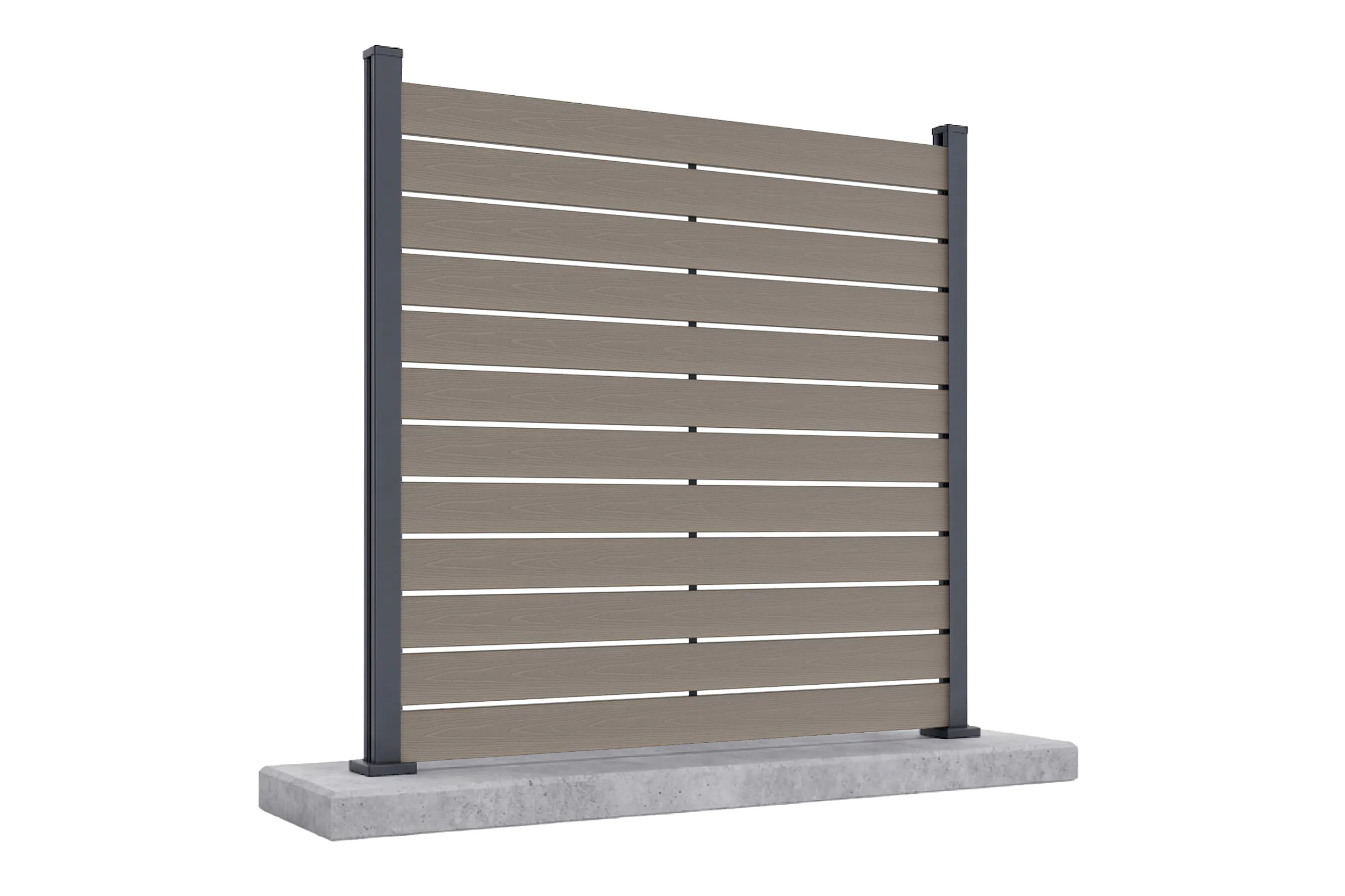 Design z systemem szczelin: Innowacyjny układ desek zapewnia idealny balans między poczuciem prywatności a swobodnym przepływem powietrza, nadając posesji nowoczesny i lekki wygląd.