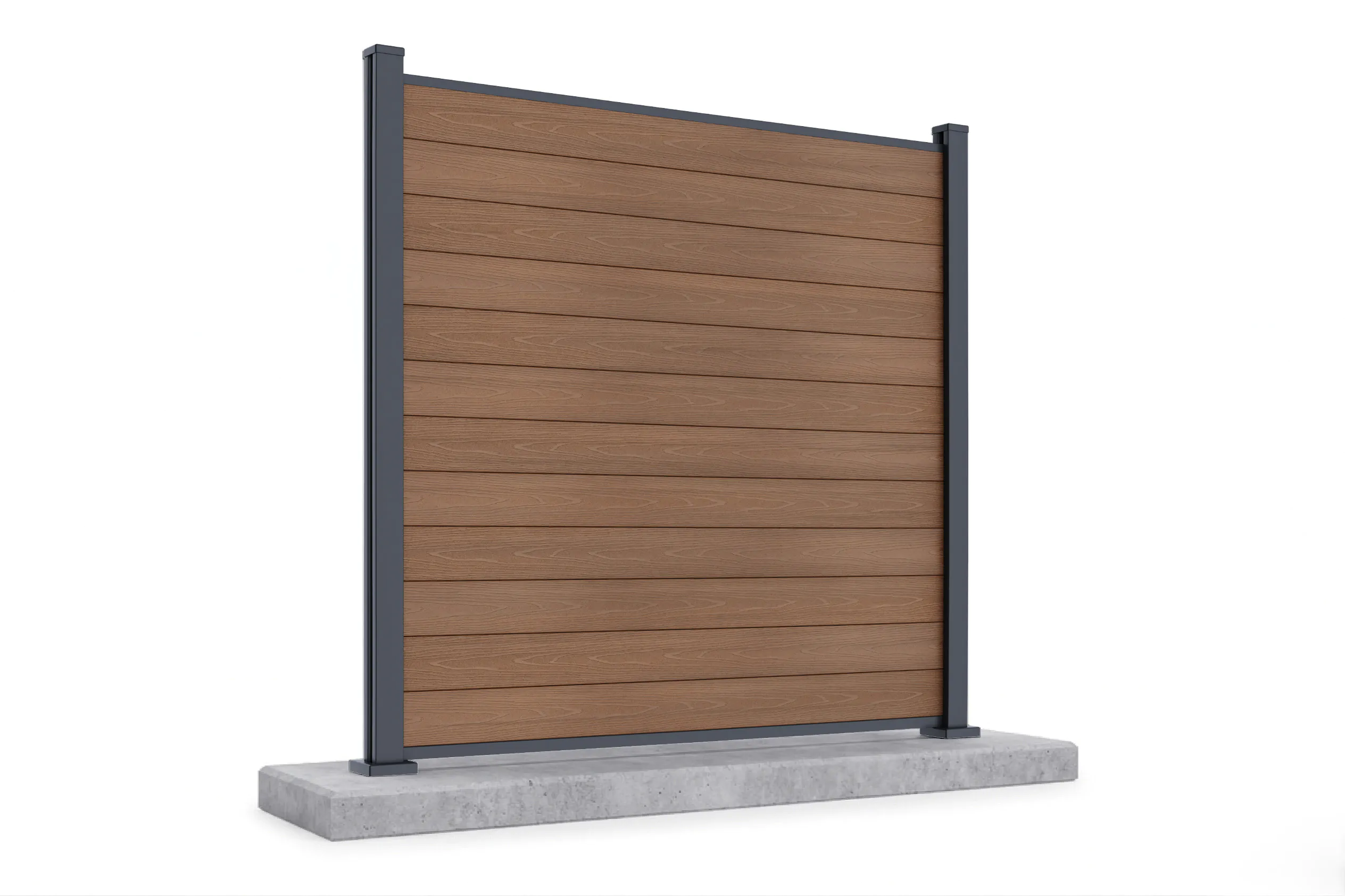 Przęsło ogrodzeniowe do mocowania na twardym podłożu 1,8 m URBAN Teak marki Gutroof to stylowe ogrodzenie kompozytowe, które emanuje prestiżem, stanowiąc luksusową wizytówkę każdej posesji. Wykorzystanie innowacyjnego WPC oraz aluminium sprawia, że konserwacja jest ograniczona do minimum i wymagana tylko w razie potrzeby, oferując pełną prywatność i odporność na zmienne warunki pogodowe. Kolor płotu zachowuje intensywność bez olejowania i malowania, tworząc harmonijną przestrzeń pełną klasy i nowoczesnego szyku.