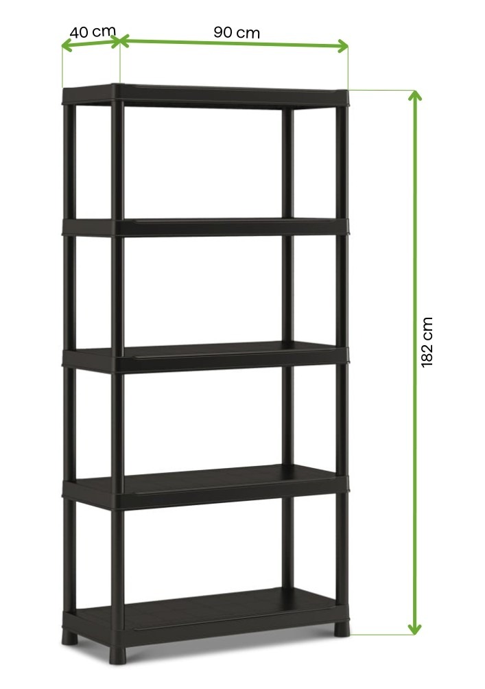 5 wytrzymałych półek z maksymalnym obciążeniem do 55 kg każda