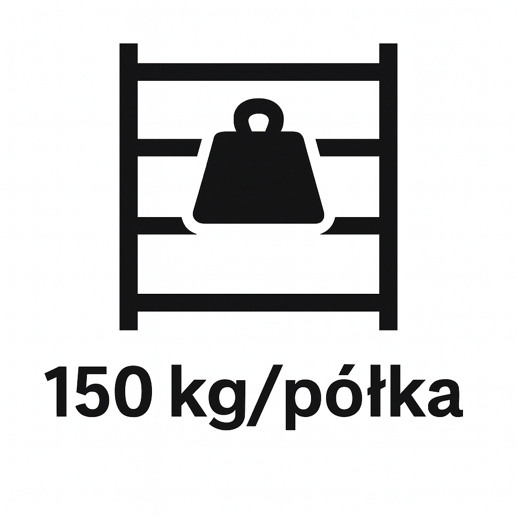 Dzięki wzmocnionej, żebrowanej konstrukcji belek, regał ten bezpiecznie utrzyma aż 150 kg obciążenia na każdą z 4 półek, osiągając imponującą całkowitą nośność 600 kg.
