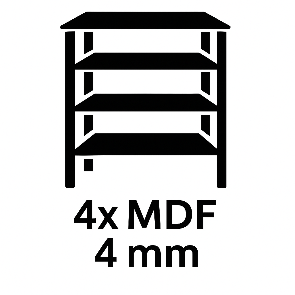 4 półki z wytrzymałej płyty MDF o grubości 4 mm