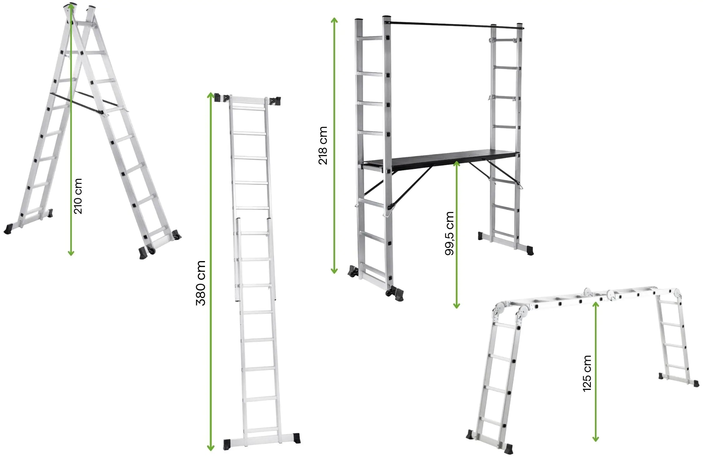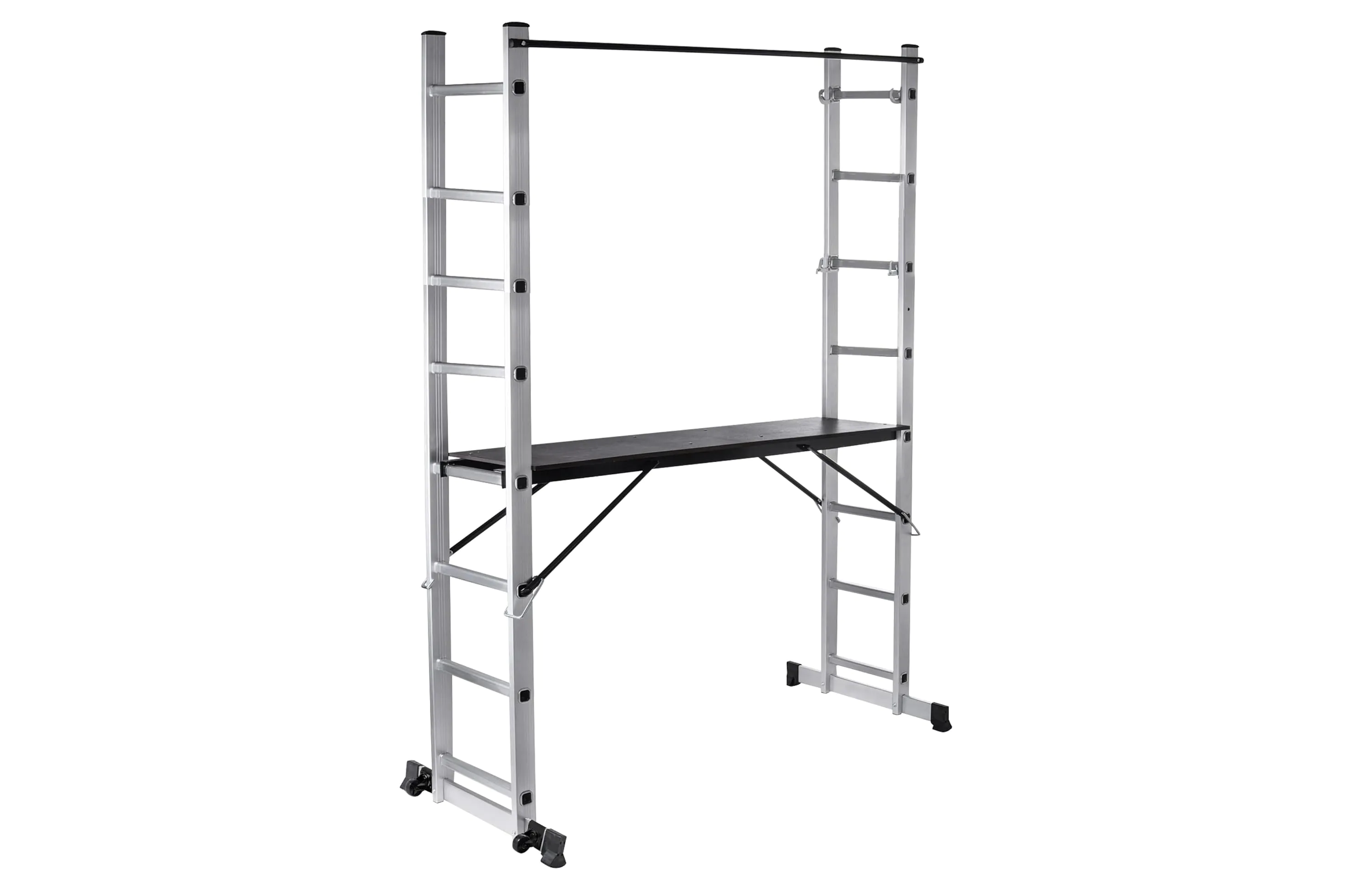 To rusztowanie to uniwersalny sprzęt, który z łatwością przekształcisz w platformę roboczą, drabinę przystawną lub wolnostojącą (typ „A”). Ta niezwykła funkcjonalność sprawia, że jedno narzędzie wystarczy do różnorodnych prac w domu, ogrodzie czy na placu budowy, oszczędzając Twój czas i pieniądze.