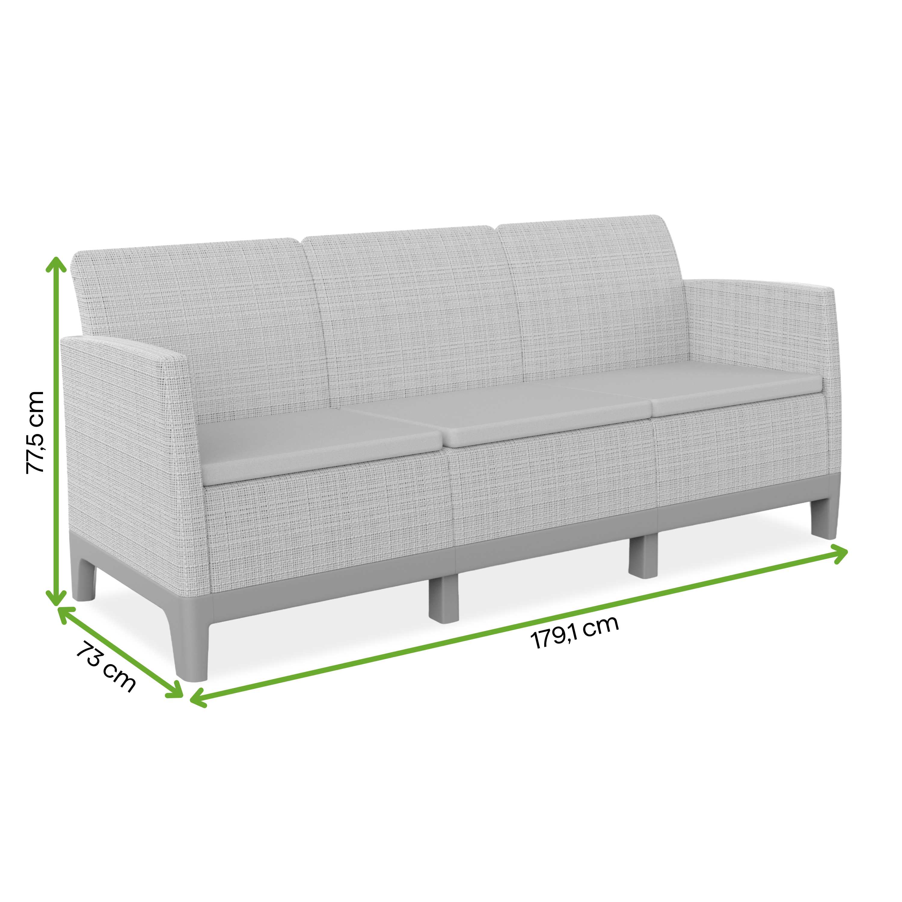 Przestronna, trzyosobowa forma: Optymalna wielkość sofy zapewnia mnóstwo miejsca dla Ciebie i Twoich bliskich, tworząc wymarzone centrum ogrodowych spotkań.