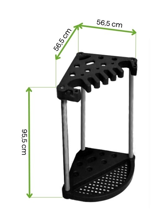 Stojak narożny Keter CORNER TOOL RACK to praktyczne rozwiązanie do przechowywania narzędzi ogrodniczych w garażu, domku narzędziowym lub schowku. Umożliwia przechowywanie aż 24 narzędzi, które można wygodnie wkładać od przodu, co zapewnia szybki dostęp. Konstrukcja wykonana z wytrzymałego tworzywa odpornego na uszkodzenia i warunki atmosferyczne. Możliwość zamocowania do ściany gwarantuje dodatkową stabilność i bezpieczeństwo użytkowania.