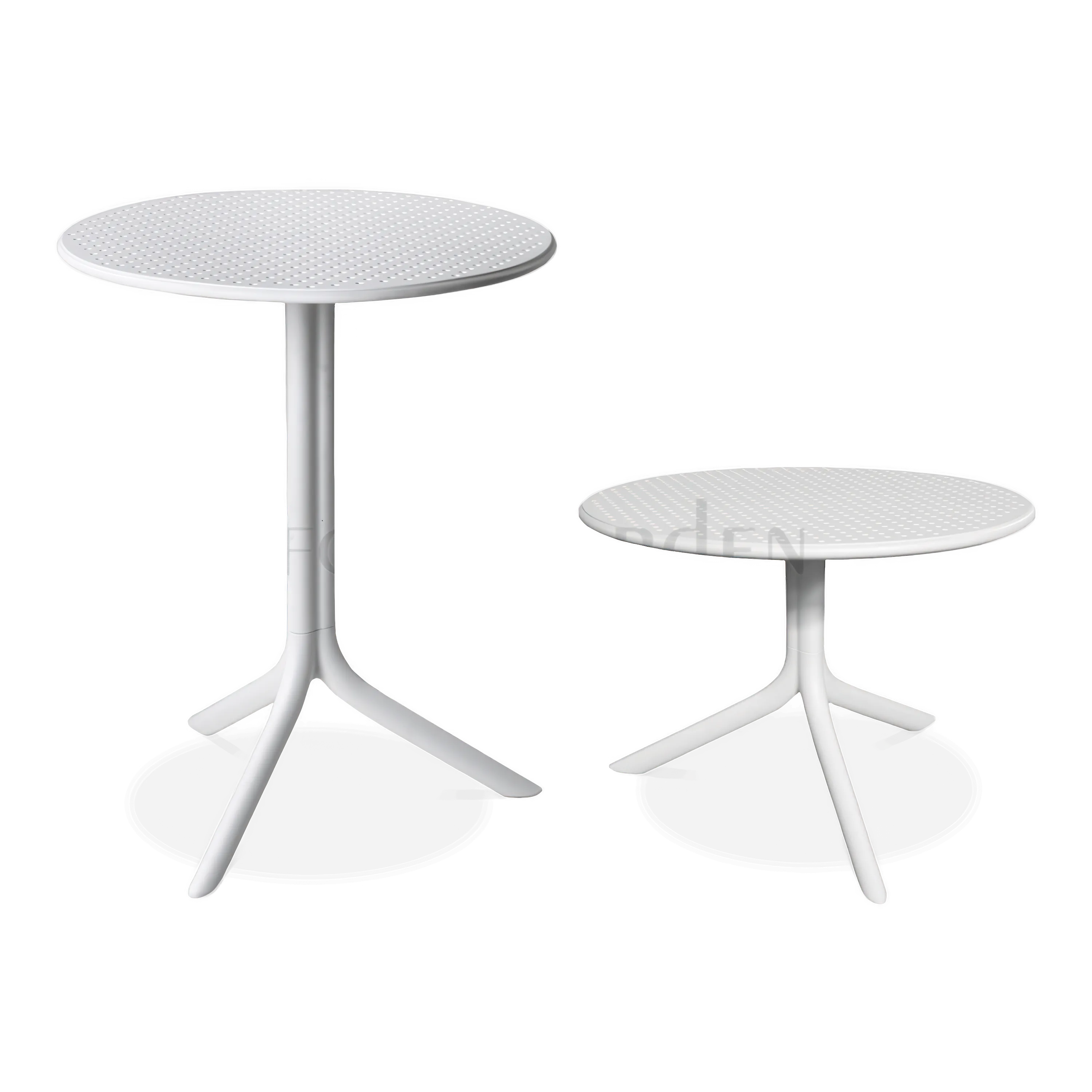 Ogrodowy stół jadalniany i mały stolik kawowy jednocześnie - wystarczy zamocować okrągły blat na wyższej (76,5 cm) bądź niższej (40 cm) ze stanowiących jeden zestaw nóg i gotowe. Jak doskonale widać na zdjęciach, Nardi Step Bianco z Włoch to nie tylko praktyczne “dwa w jednym”, ale i niezwykle stylowe wyposażenie. A jeśli dołożyć do tego jeszcze niezawodność i nieprzeciętną żywotność mebli, otrzyma się produkt zdecydowanie wart swojej ceny. Ze stołami Nardi Step w zanadrzu spokojnie można poważnie myśleć o organizowaniu dystyngowanych garden party, towarzyskich spotkań ze znajomymi i najbliższą rodziną… czy zmianie wystroju i klimatu w prowadzonej przez siebie restauracji. Za sprawą ażurowego wzornictwa okrągłych blatów i zgrabnych nóg na 3 stopach białe stoliki prezentują się nad wyraz elegancko. Ponadto stoły ogrodowe Nardi Step Bianco mają cały szereg bardzo użytecznych zalet, wynikających mniej lub bardziej bezpośrednio z nadzwyczaj starannego wykonania mebli. Mocne nogi ze specjalnym dociążeniem i antypoślizgowymi końcówkami zapewniają maksymalną stabilność, a odpowiednie i nieszkodliwe dla środowiska wykorzystanie tworzyw sztucznych - rzadko spotykaną odporność na kaprysy pogody. Dla stołu ogrodowego Nardi Step charakterystyczne jest to, że zachowuje intensywne kolory przez wiele lat, nie wymagając przy tym chemicznych środków konserwujących. Do prawidłowej pielęgnacji tych włoskich mebli wystarczy raz na jakiś czas przetrzeć je wilgotną szmatką. Krótko i konkretnie: stół Nardi Step Bianco będzie znakomitym wyborem do wyposażenia domów, jak i do restauracji oraz innego rodzaju kanałów HoReCa.